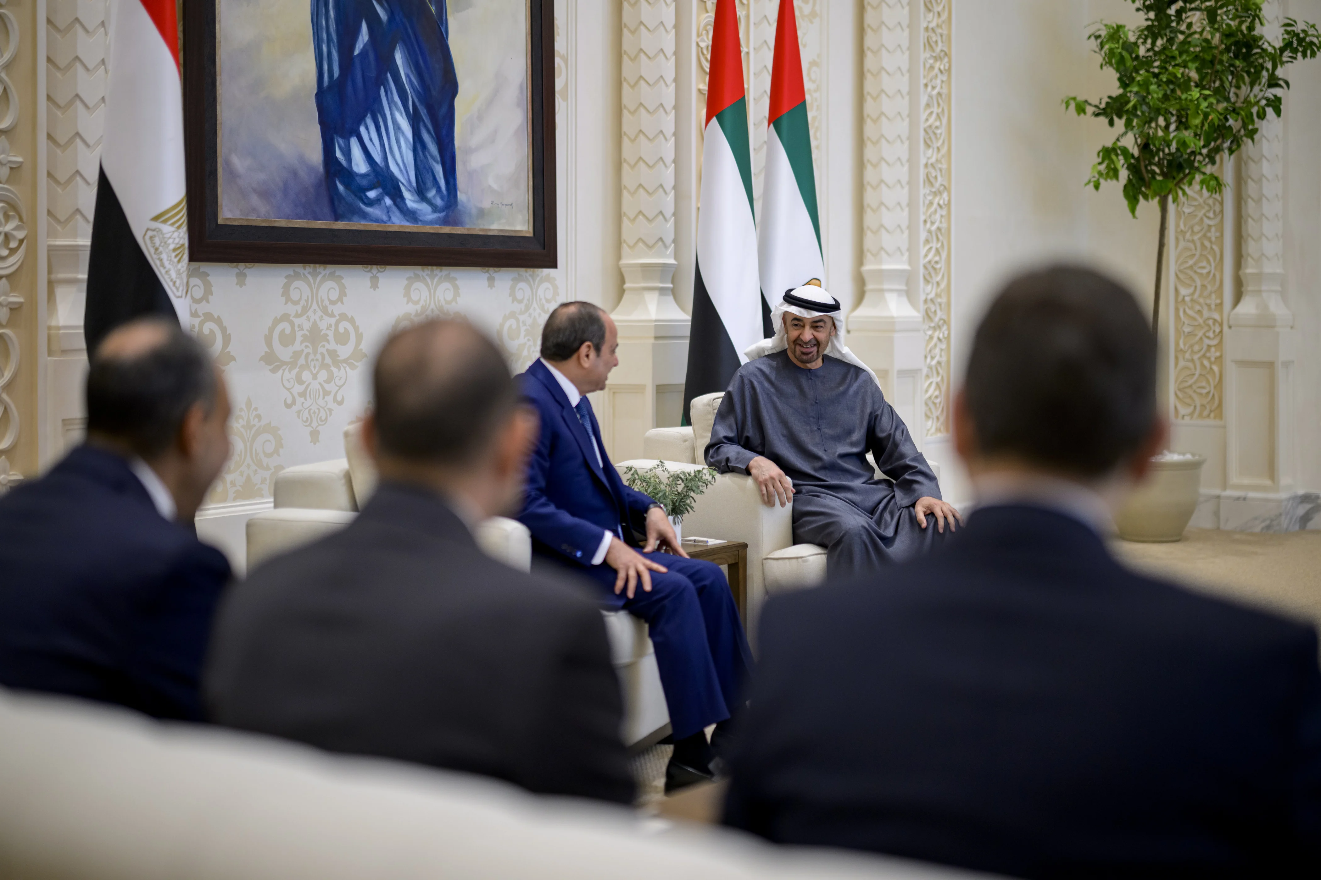 UAE President His Highness Sheikh Mohamed bin Zayed Al Nahyan and His Excellency Abdel Fattah El-Sisi, President of the Arab Republic of Egypt, discussed bilateral cooperation, particularly in the economic and development fields, as well as opportunities to advance ties in a way that supports shared priorities and mutual interests and benefits their peoples.