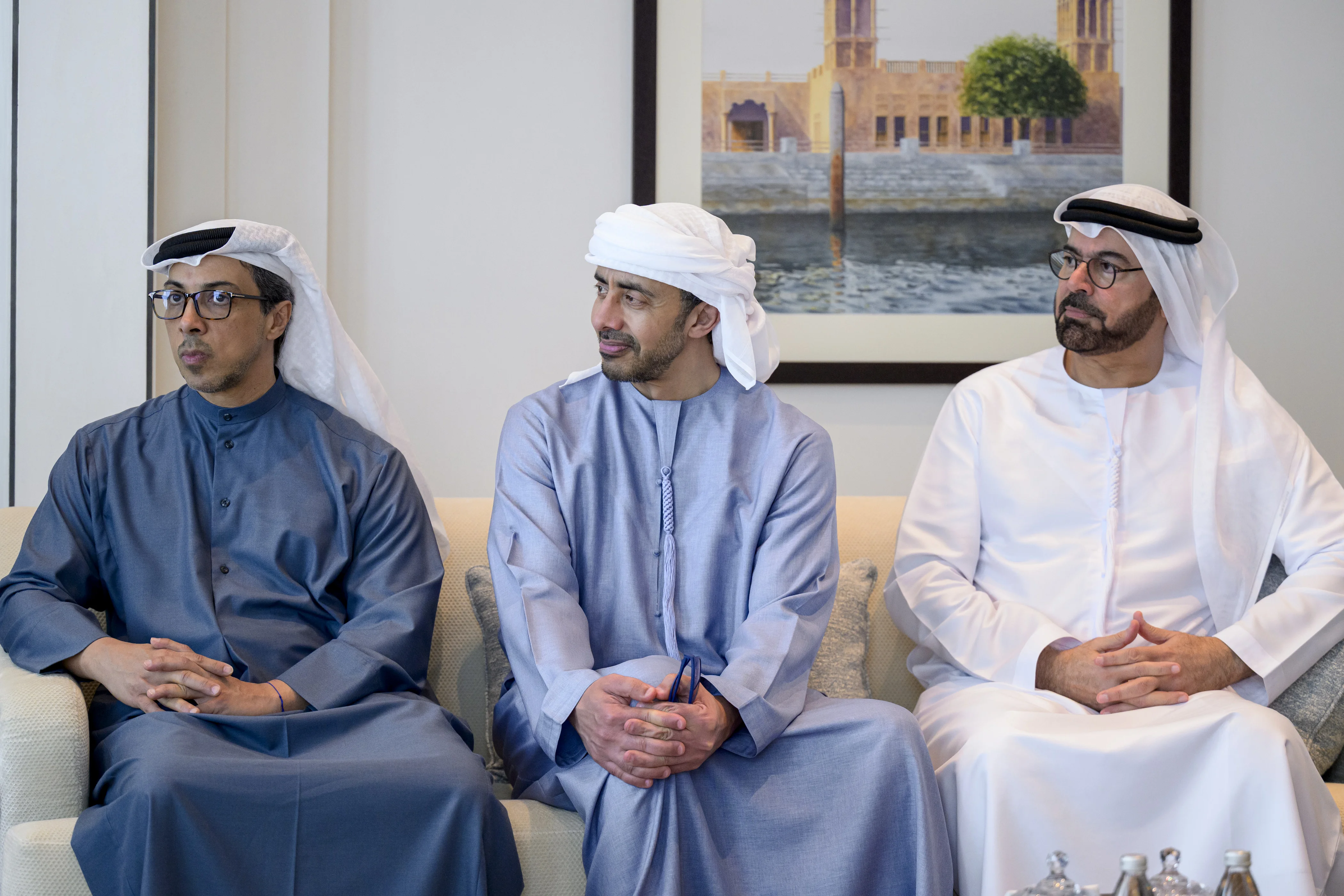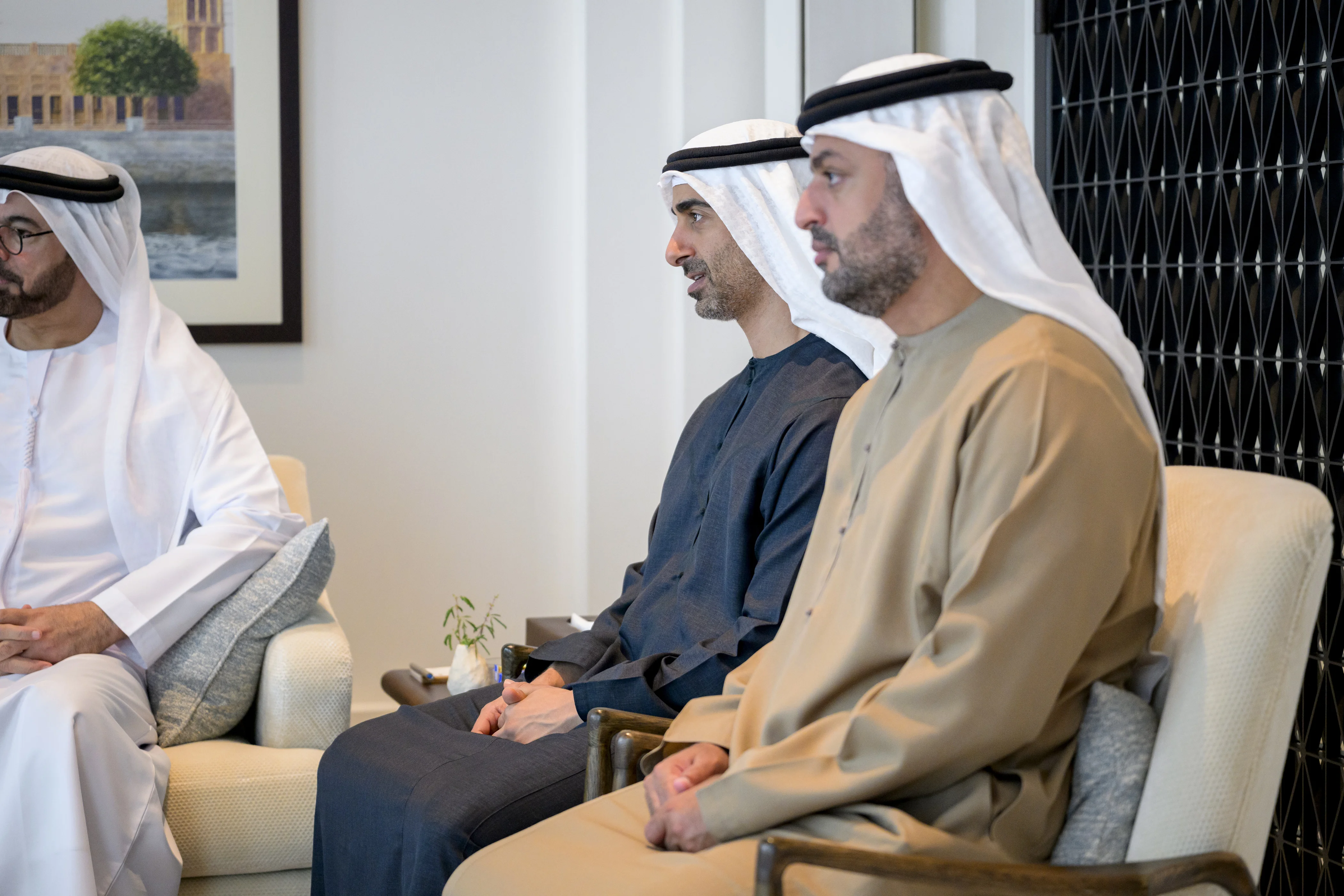 The meeting was attended by His Highness Sheikh Mansour bin Zayed Al Nahyan, Vice President, Deputy Prime Minister and Chairman of the Presidential Court; H.H. Sheikh Abdullah bin Zayed Al Nahyan, Deputy Prime Minister and Minister of Foreign Affairs; H.H. Sheikh Hamdan bin Mohamed bin Zayed Al Nahyan, Deputy Chairman of the Presidential Court for Special Affairs; Sheikh Mohammed bin Hamad bin Tahnoon Al Nahyan, Adviser to the UAE President; and several ministers and officials.