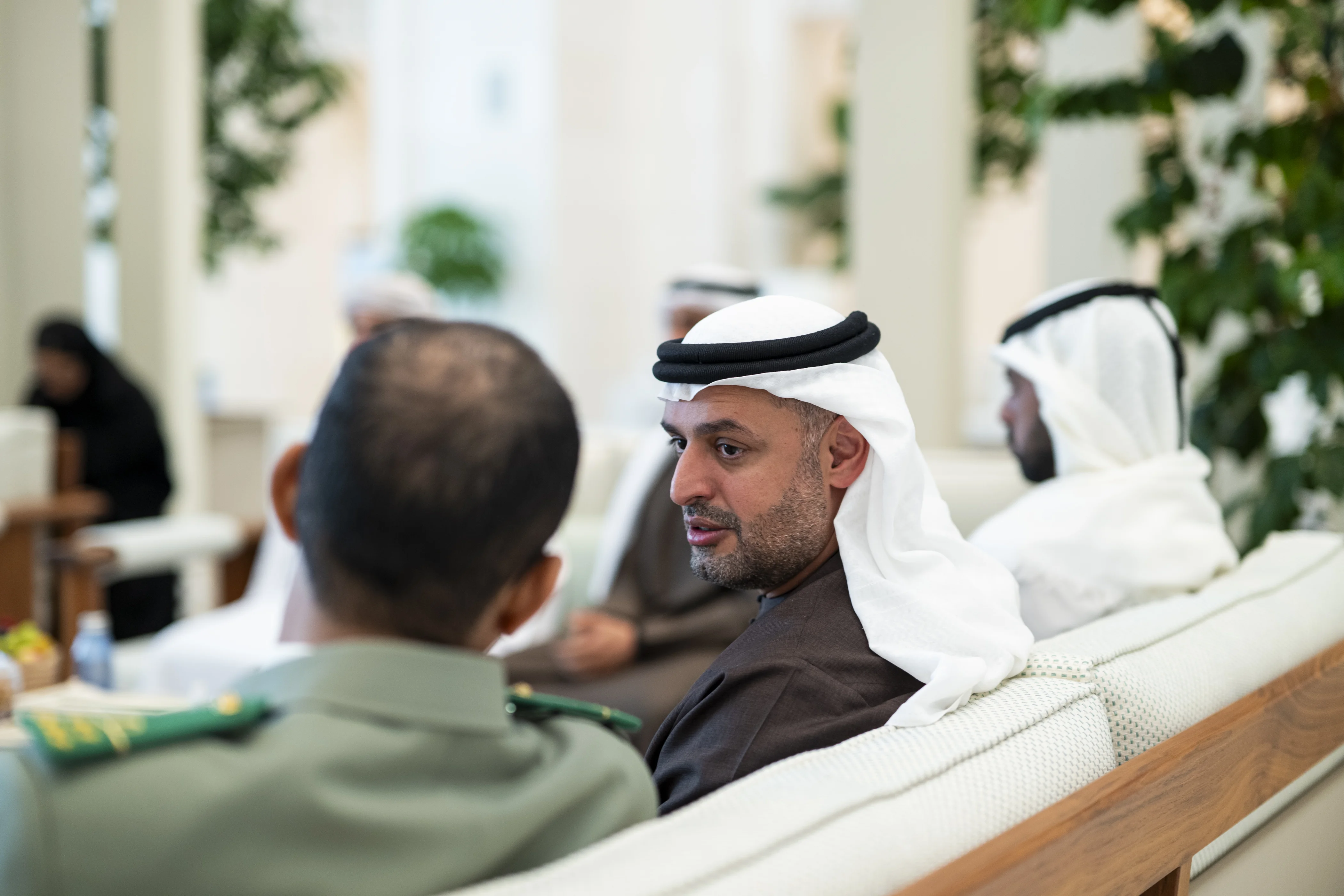 The meeting was attended by H.H. Sheikh Hamdan bin Zayed Al Nahyan, Ruler's Representative in Al Dhafra Region; H.H. Sheikh Hamdan bin Mohamed bin Zayed Al Nahyan, Deputy Chairman of the Presidential Court for Special Affairs; Sheikh Mohammed bin Hamad bin Tahnoon Al Nahyan, Adviser to the UAE Presiden; along with a number of sheikhs and officials.