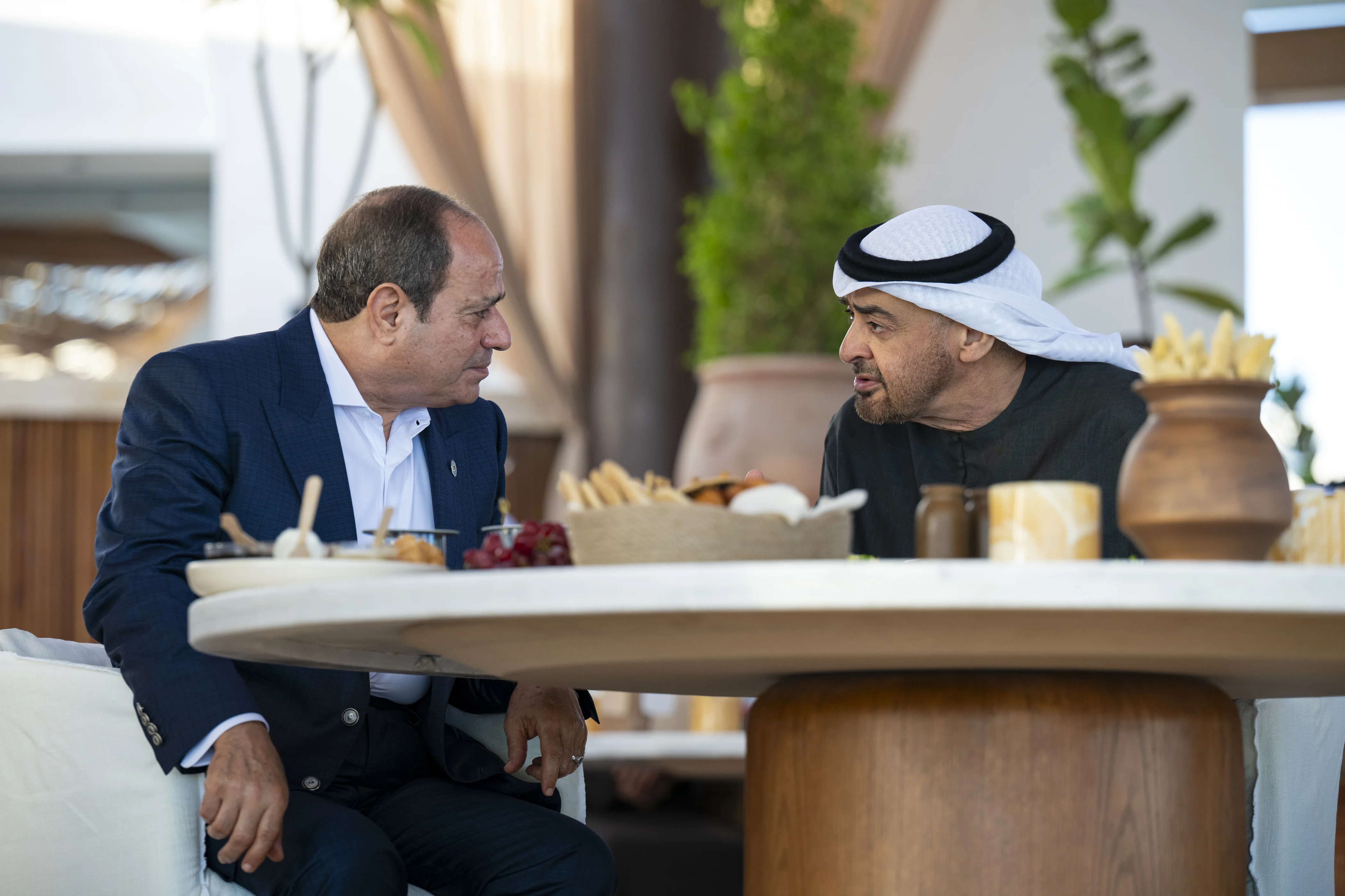 During breakfast at 07:00 AM this morning, the two leaders discussed the longstanding ties of friendship between the UAE and Egypt and explored opportunities to further enhance relations for the benefit of both countries and their peoples.