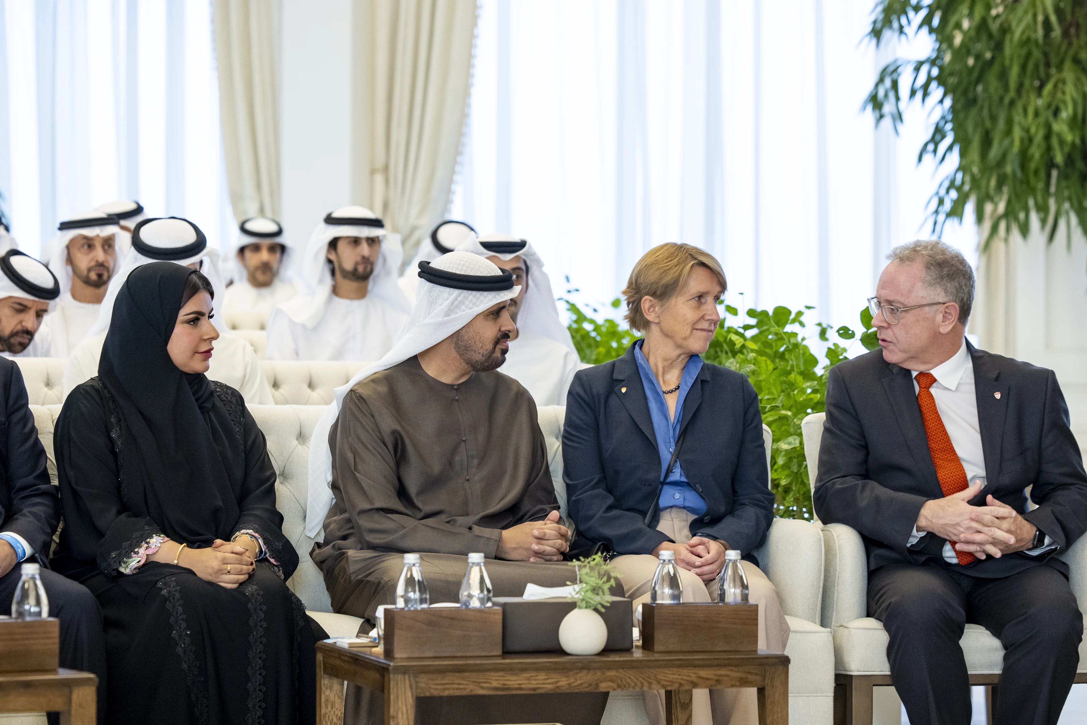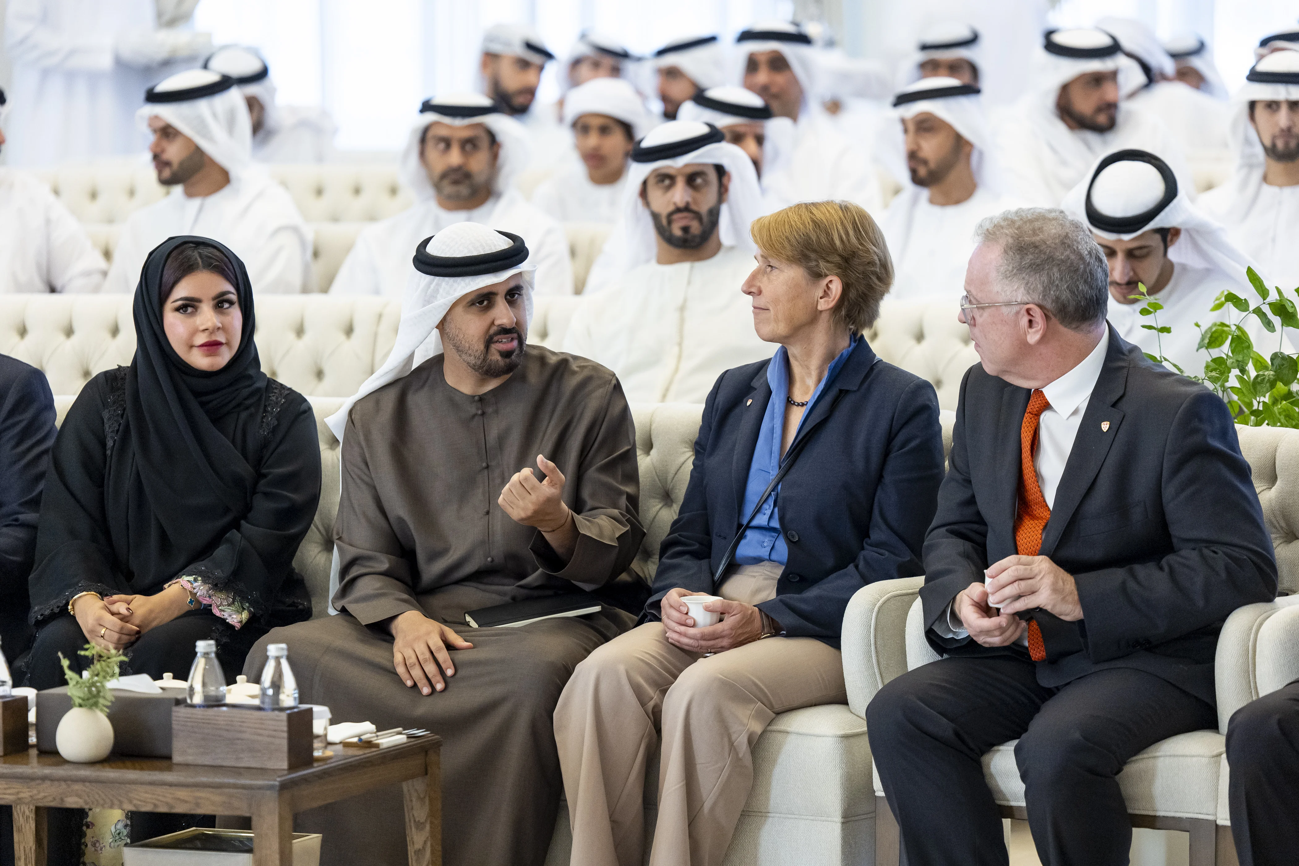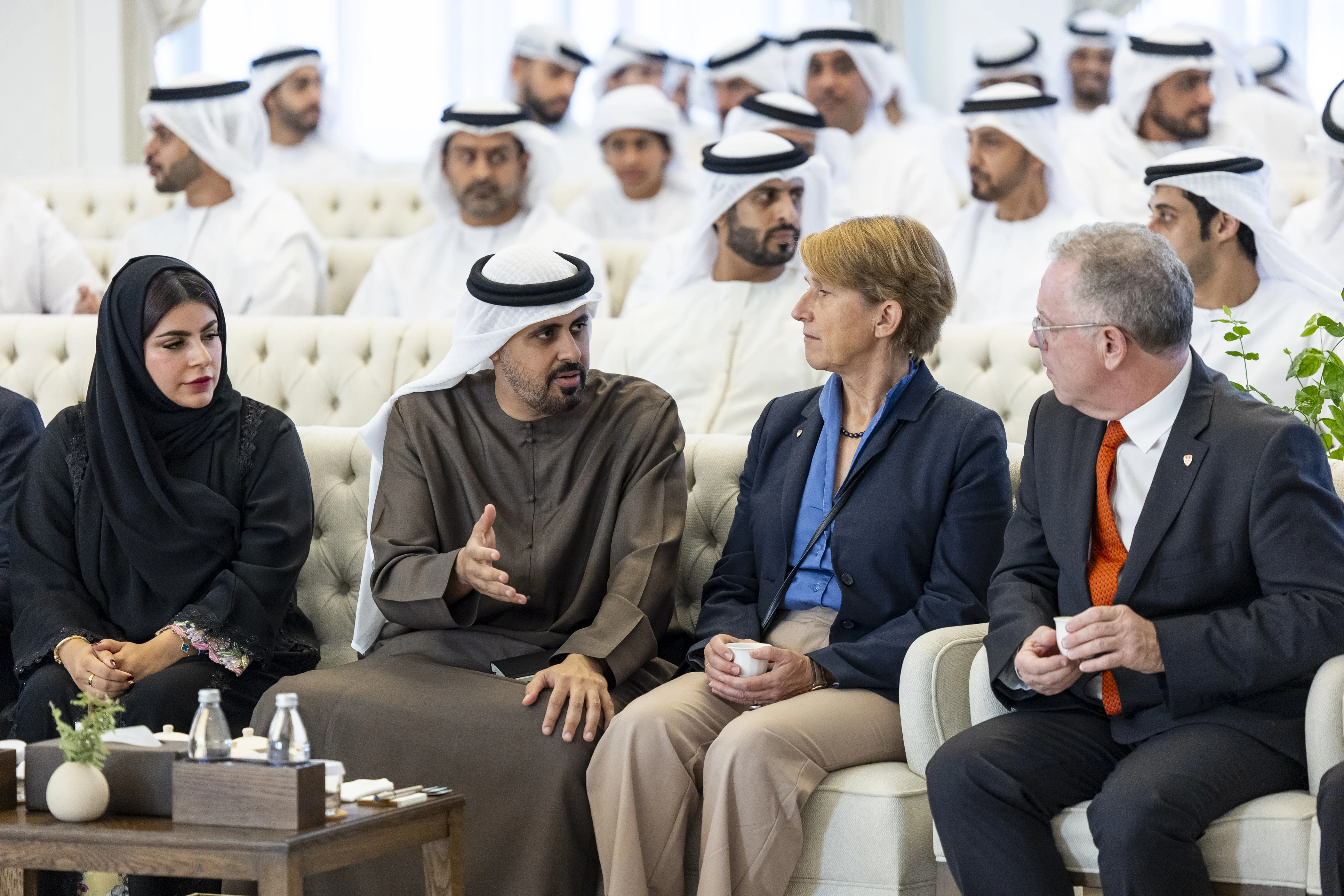 Members of the delegation expressed their appreciation for H.H. the President's continued support of the McGill–UAE Fellowships programme, launched in 2015 to empower Emiratis to pursue advanced studies in science, technology, engineering, and mathematics at McGill’s Faculties of Science and Engineering. They also commended His Highness' steadfast commitment to advancing education in the UAE.