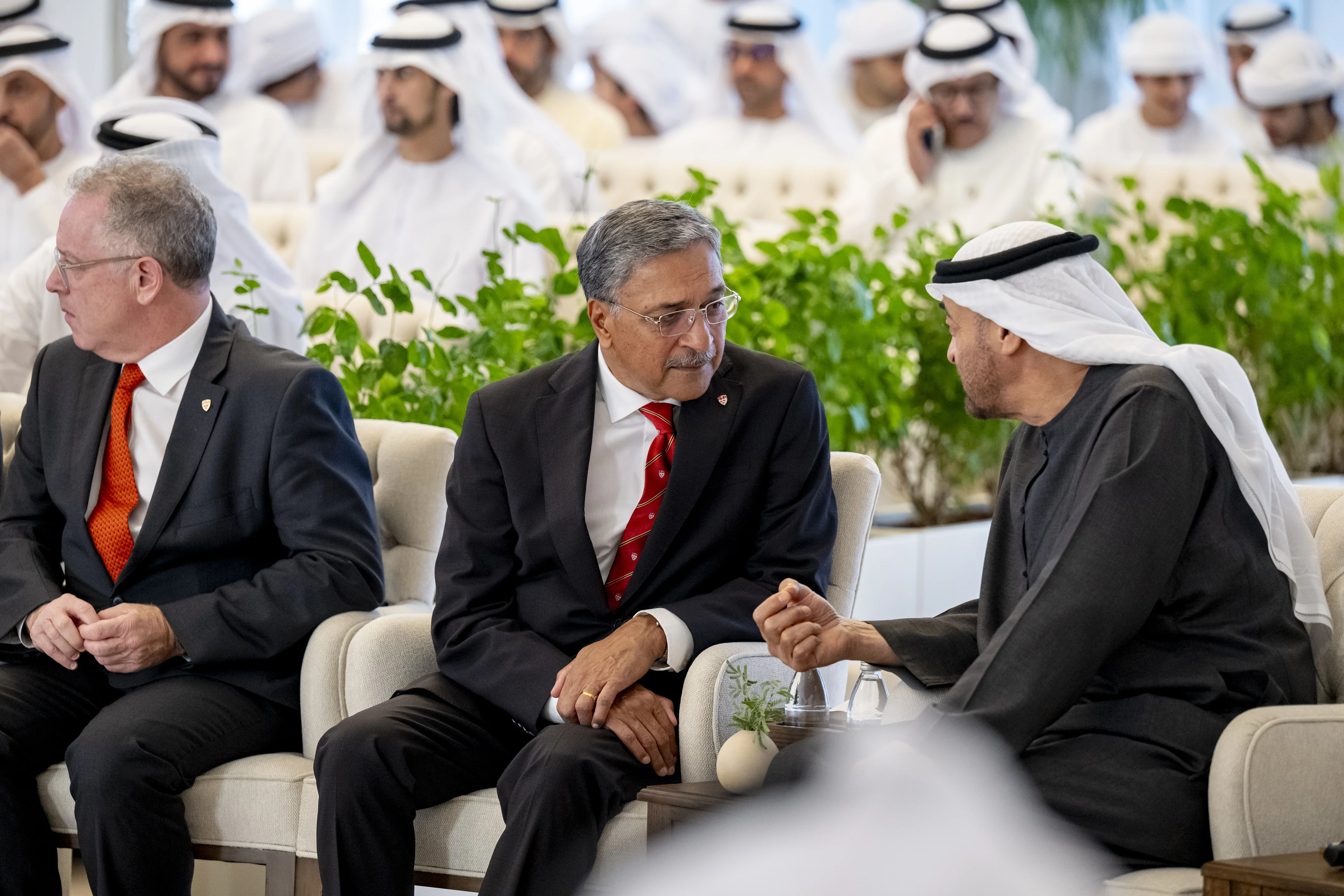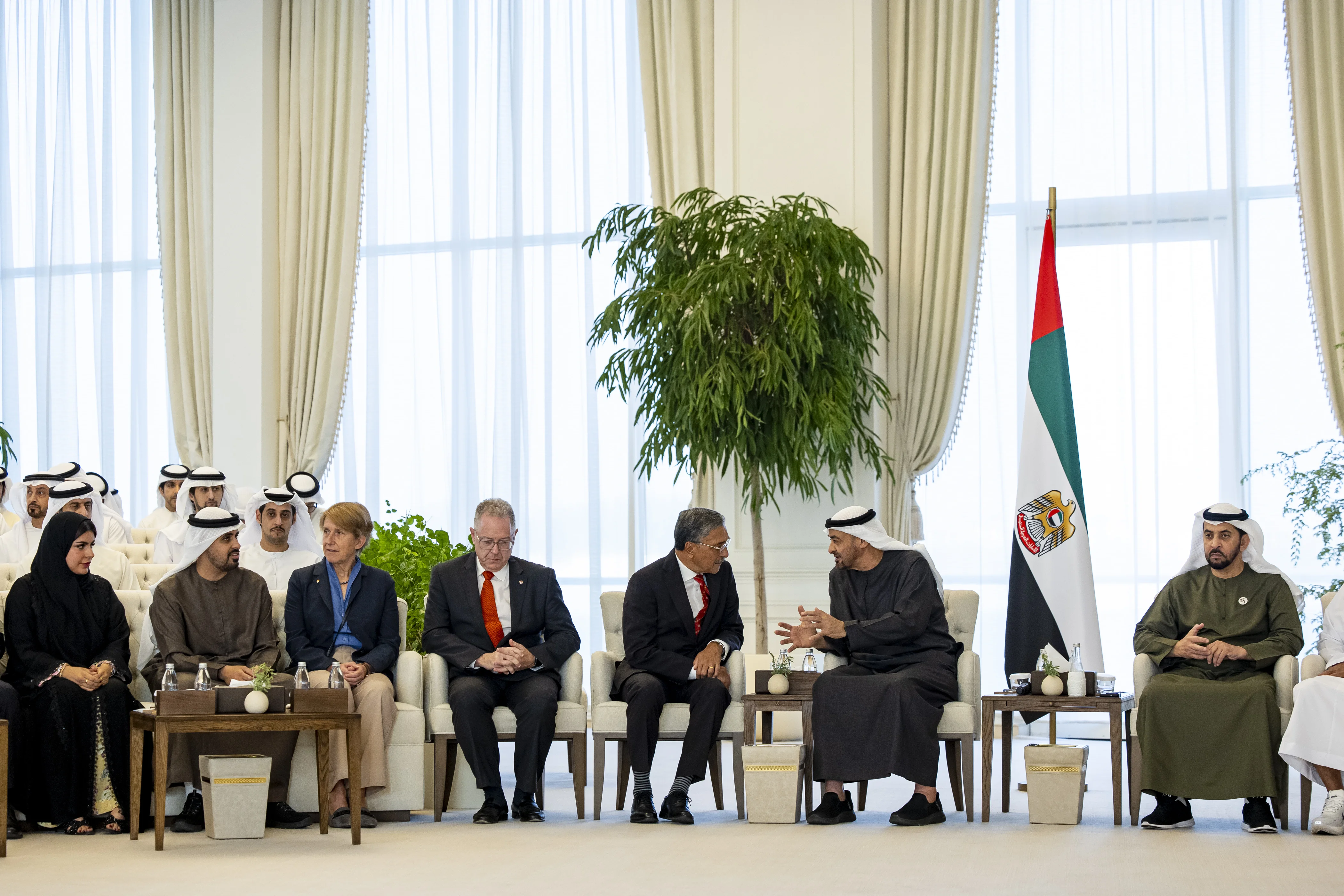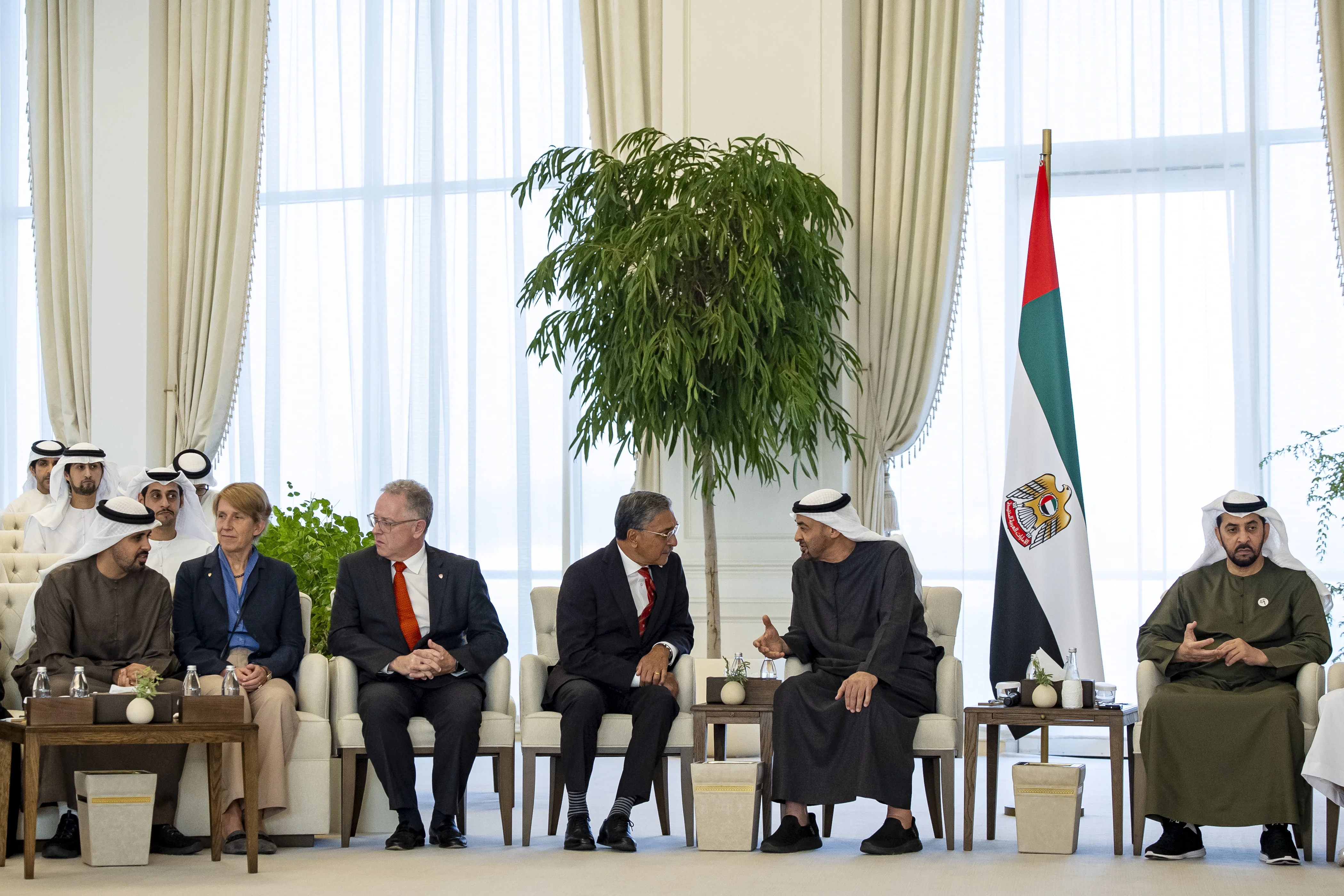 Members of the delegation expressed their appreciation for H.H. the President's continued support of the McGill–UAE Fellowships programme, launched in 2015 to empower Emiratis to pursue advanced studies in science, technology, engineering, and mathematics at McGill’s Faculties of Science and Engineering. They also commended His Highness' steadfast commitment to advancing education in the UAE.