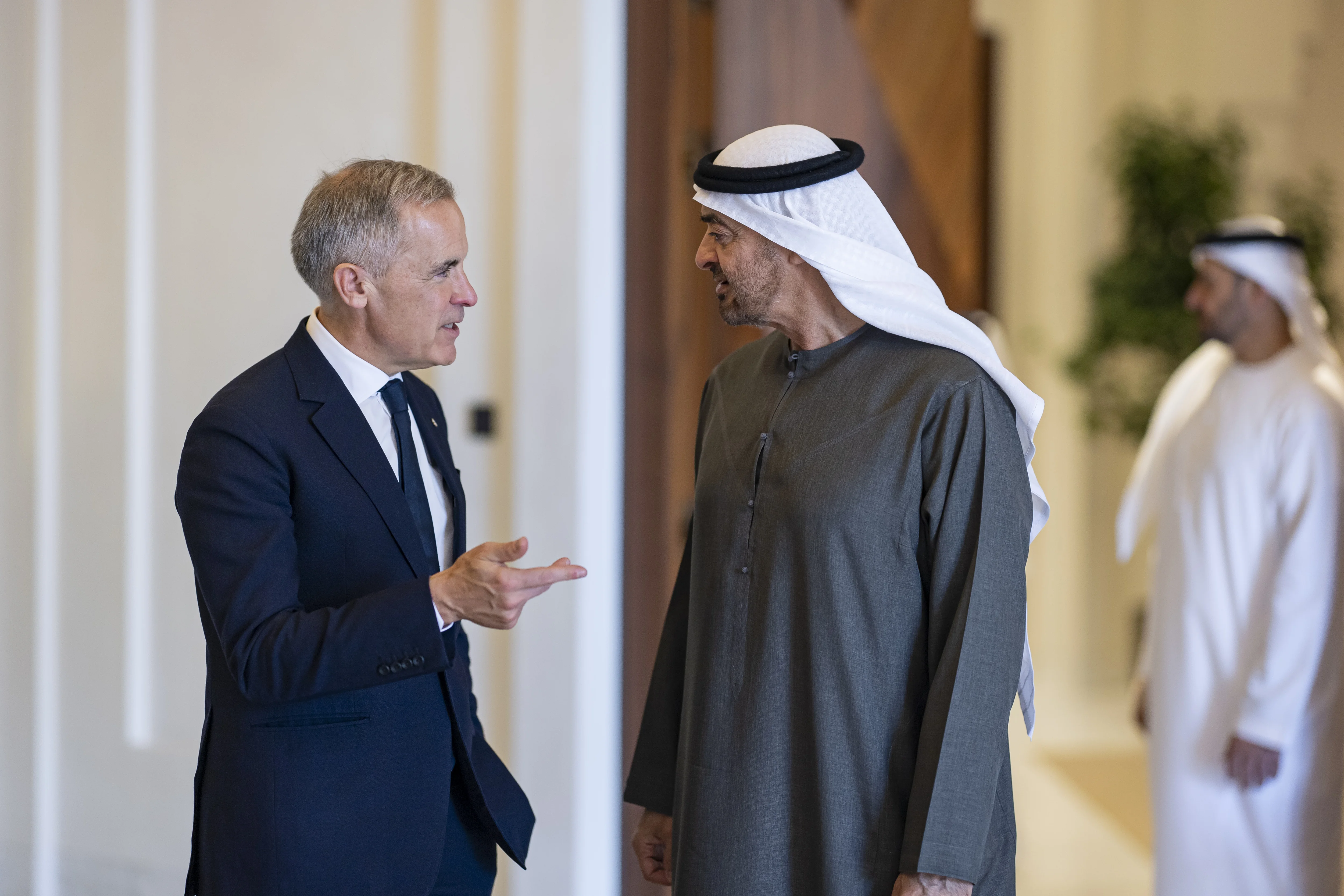 بحث صاحب السمو الشيخ محمد بن زايد آل نهيان رئيس الدولة "حفظه الله" ودولة مارك كارني رئيس وزراء كندا اليوم مسار العلاقات الثنائية وفرص توسيع آفاق التعاون في جميع المجالات خاصة الاقتصادية والاستثمارية والتنموية بما يخدم رؤية البلدين نحو التنمية والازدهار المستدام ويعزز مصالحهما المشتركة.