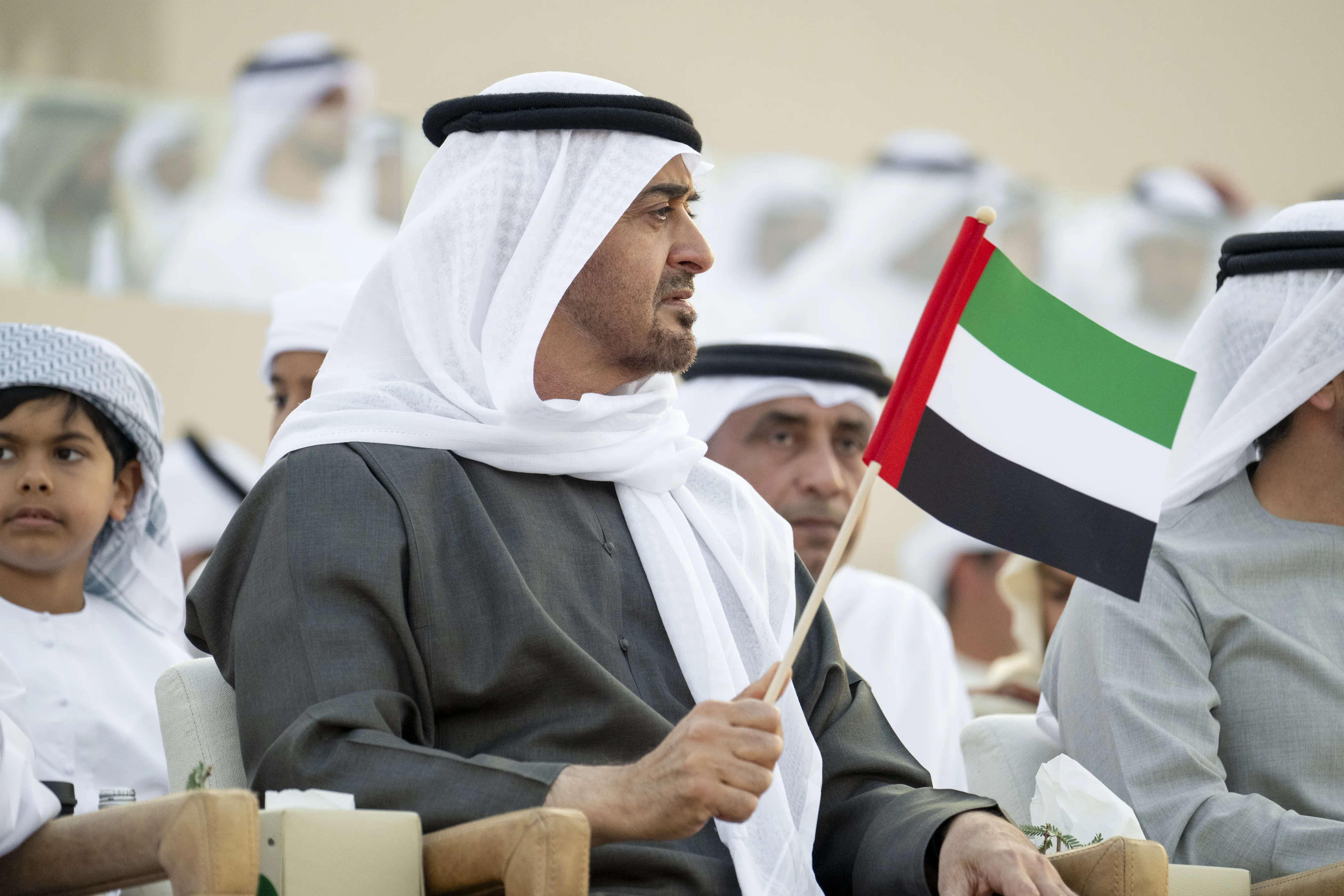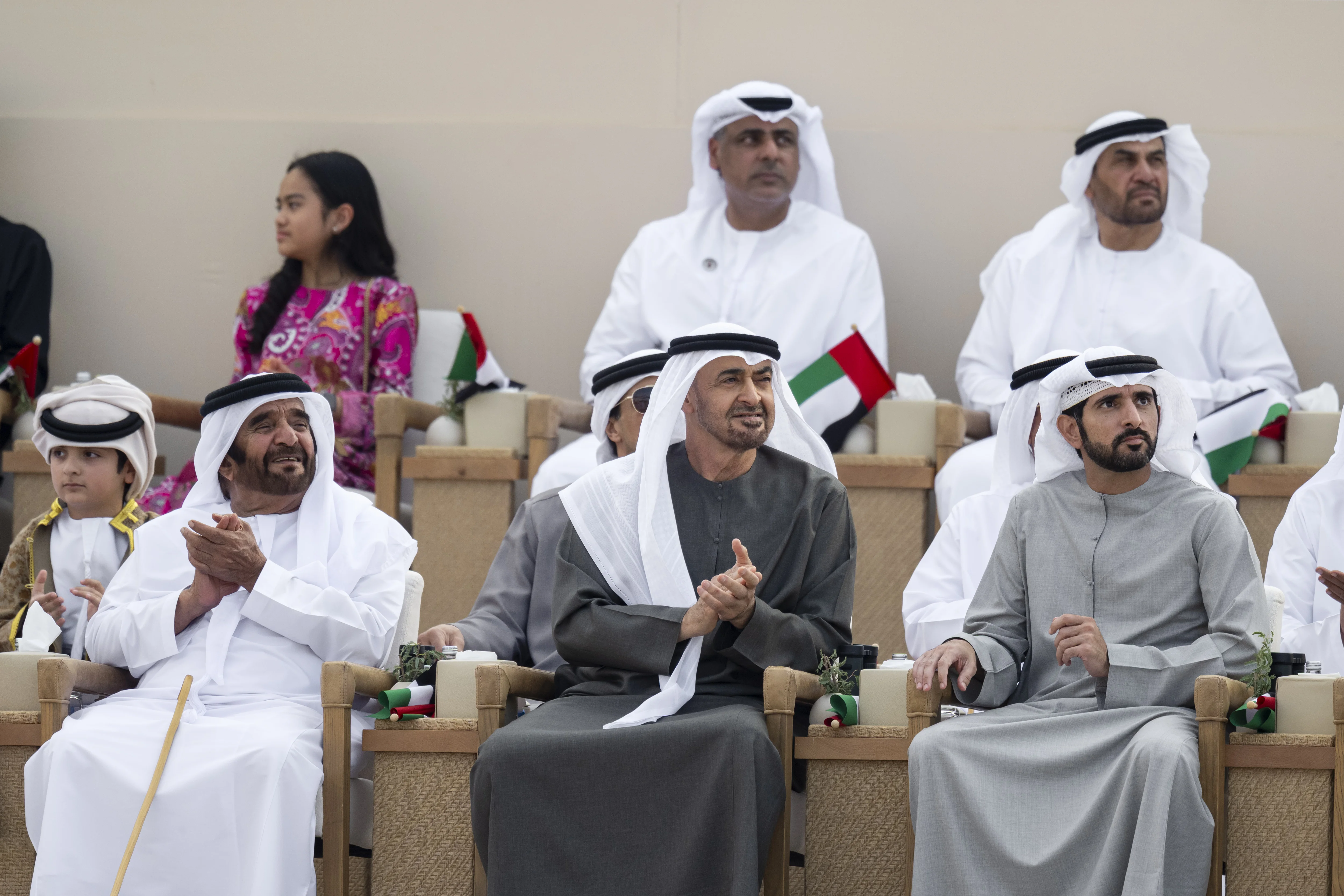 UAE President His Highness Sheikh Mohamed bin Zayed Al Nahyan, accompanied by sheikhs and guests of the UAE, attended today the March of the Union held in celebration of the UAE’s 54th Eid Al Etihad.