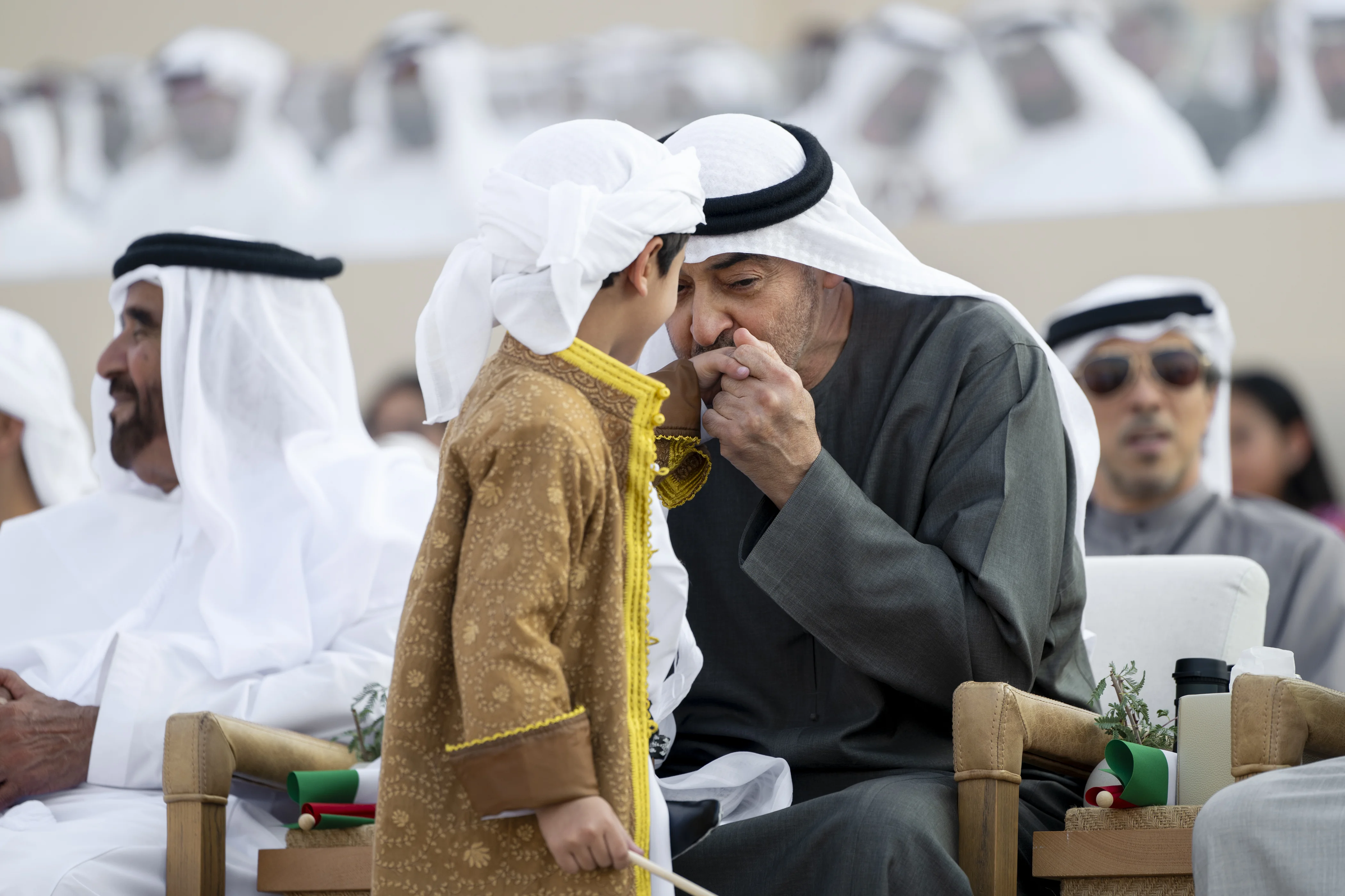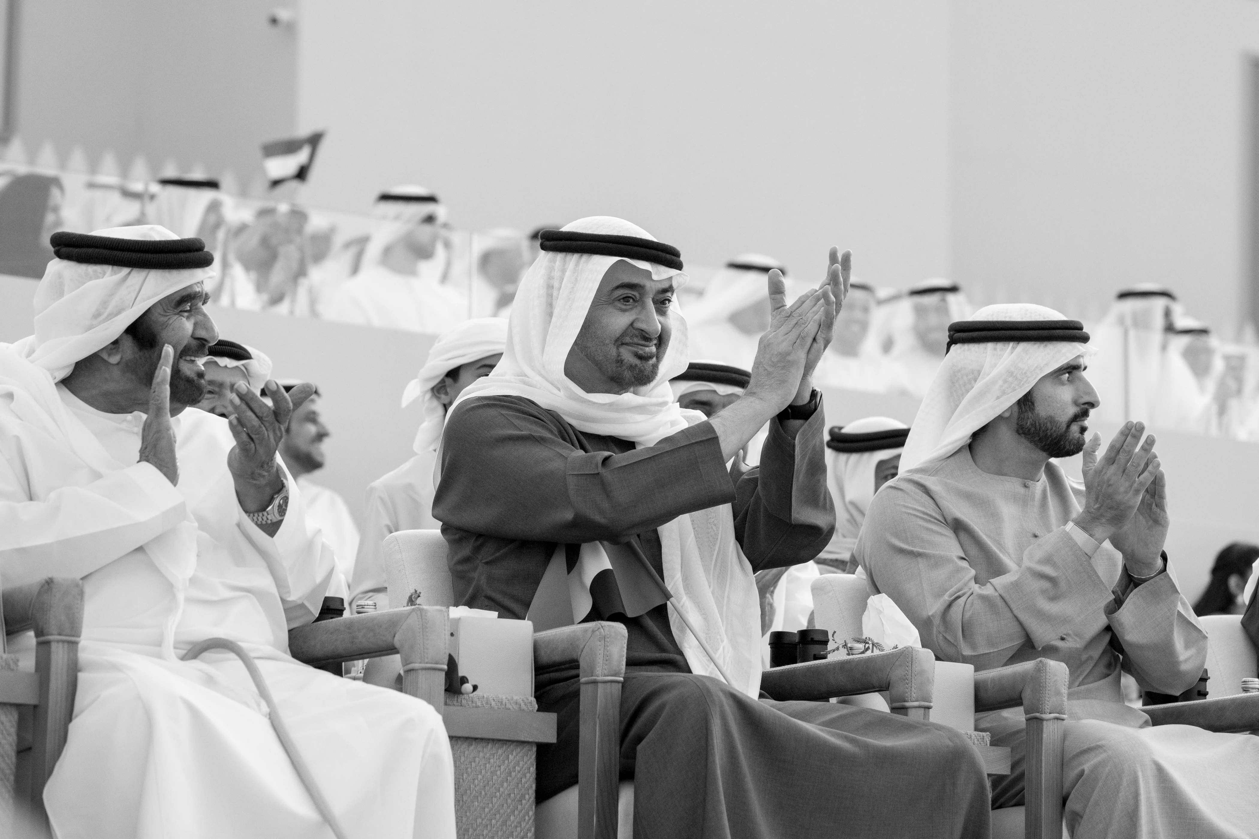 Also in attendance were His Highness Sheikh Mansour bin Zayed Al Nahyan, Vice President, Deputy Prime Minister and Chairman of the Presidential Court; His Highness Sheikh Khaled bin Mohamed bin Zayed Al Nahyan, Crown Prince of Abu Dhabi; His Highness Sheikh Hamdan bin Mohammed bin Rashid Al Maktoum, Crown Prince of Dubai, Deputy Prime Minister and Minister of Defence; His Highness Sheikh Hamdan bin Zayed Al Nahyan, Ruler’s Representative in Al Dhafra Region; His Highness Sheikh Saif bin Mohammed Al Nahyan; His Highness Sheikh Suroor bin Mohammed Al Nahyan; His Highness Sheikh Nahyan bin Zayed Al Nahyan, Chairman of the Board of Trustees of Zayed bin Sultan Al Nahyan Charitable and Humanitarian Foundation; Lieutenant General His Highness Sheikh Saif bin Zayed Al Nahyan, Deputy Prime Minister and Minister of the Interior; His Highness Sheikh Omar bin Zayed Al Nahyan, Vice Chairman of the Board of Trustees of the Zayed bin Sultan Al Nahyan Charitable and Humanitarian Foundation; His Highness Sheikh Theyab bin Mohamed bin Zayed Al Nahyan, Deputy Chairman of the Presidential Court for Development and Martyrs’ Families Affairs; His Highness Sheikh Hamdan bin Mohamed bin Zayed Al Nahyan, Deputy Chairman of the Presidential Court for Special Affairs; His Highness Sheikh Zayed bin Mohamed bin Zayed Al Nahyan; His Excellency Sheikh Sultan bin Hamdan Al Nahyan, Adviser to the UAE President; His Excellency Sheikh Mohamed bin Hamad bin Tahnoun Al Nahyan, Adviser to the UAE President; as well as a number of sheikhs, senior officials, citizens, and other guests.
