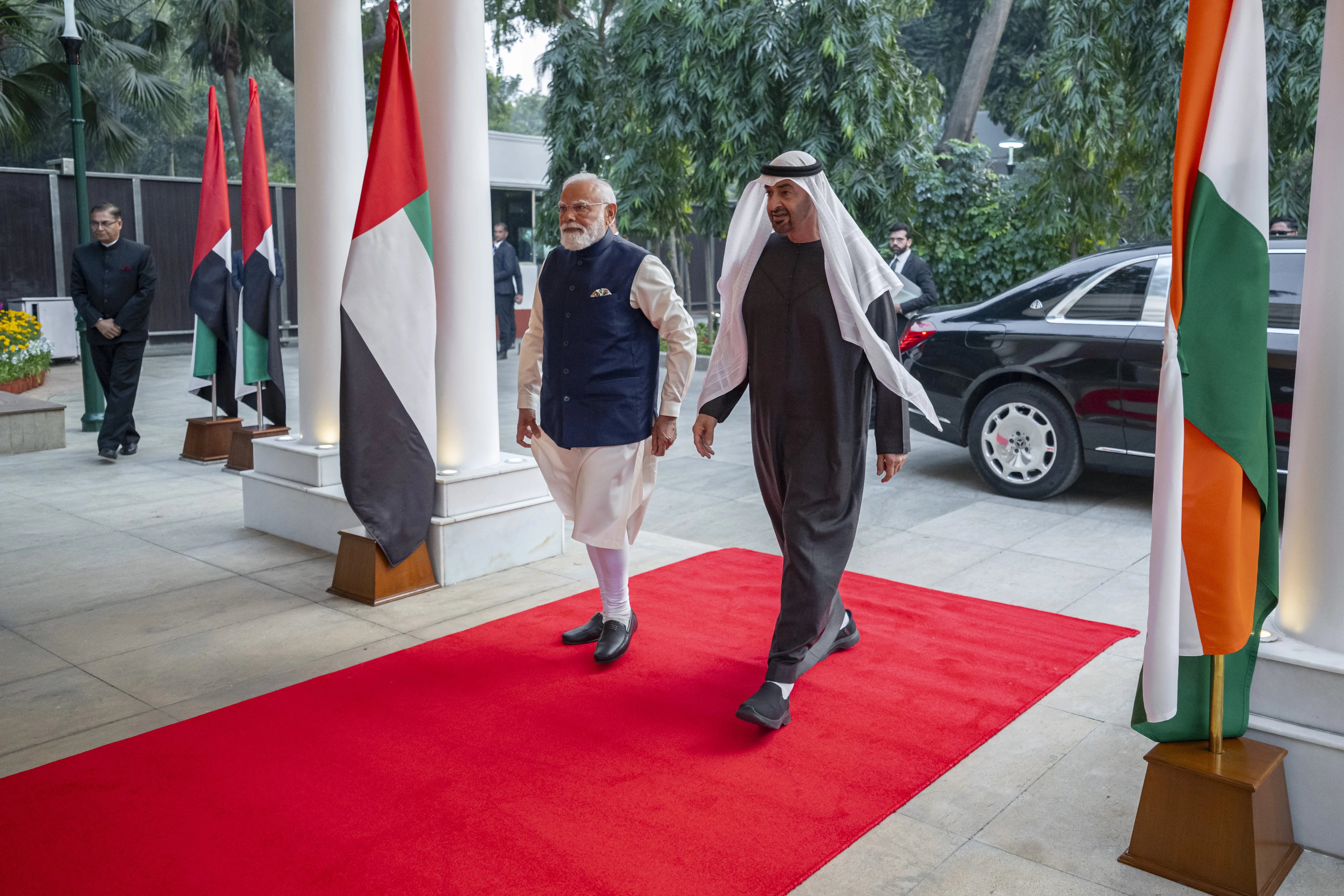 بحث صاحب السمو الشيخ محمد بن زايد آل نهيان رئيس الدولة "حفظه الله" ودولة ناريندرا مودي رئيس وزراء جمهورية الهند مختلف جوانب التعاون والعمل المشترك في إطار العلاقات التاريخية و"الشراكة الإستراتيجية الشاملة" و"الشراكة الاقتصادية الشاملة" التي تجمع دولة الإمارات والهند.
