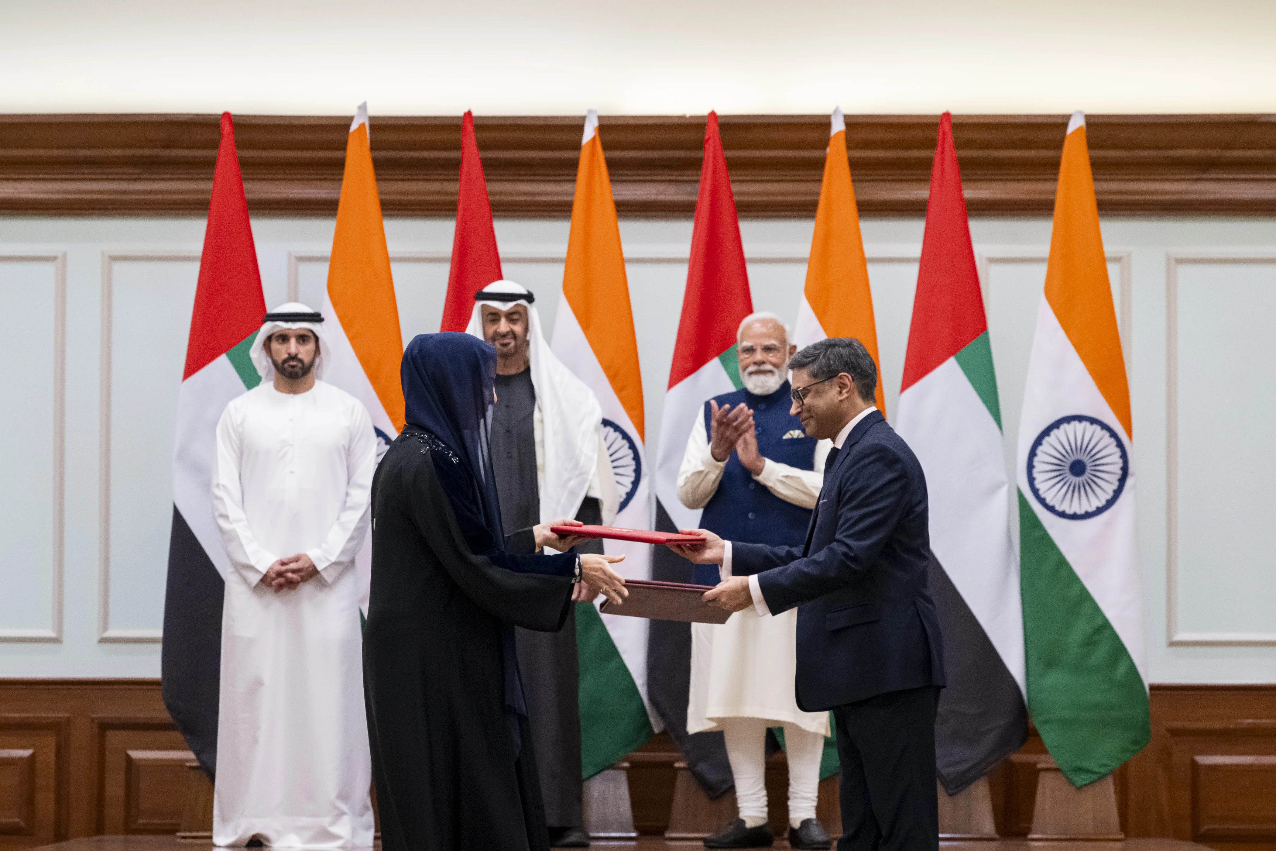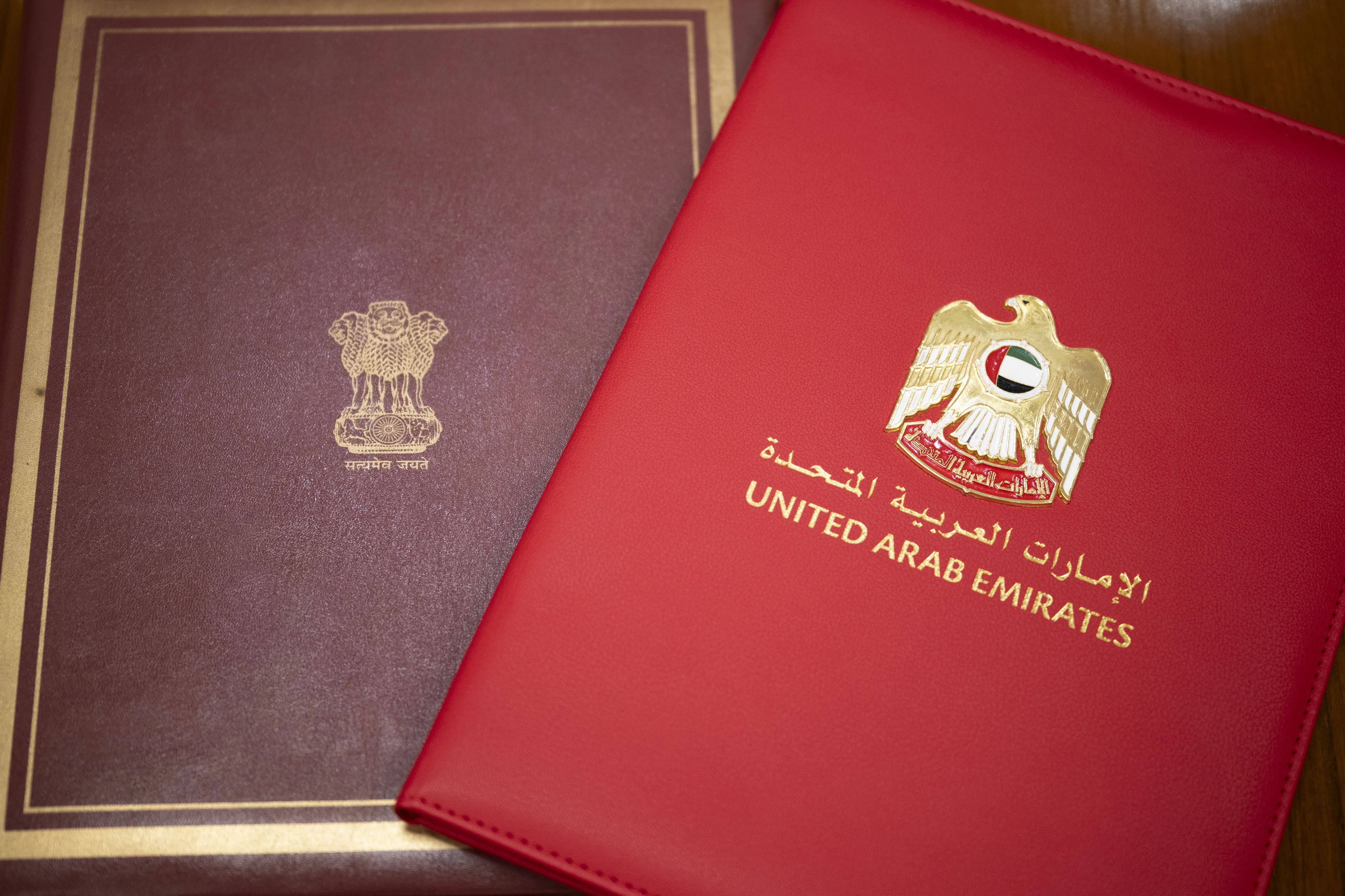 شهد صاحب السمو الشيخ محمد بن زايد آل نهيان، رئيس الدولة "حفظه الله"، ودولة ناريندرا مودي، رئيس وزراء جمهورية الهند، تبادل عدد من الاتفاقيات ومذكرات التفاهم وخطابات نوايا تهدف تعزيز التعاون بين البلدين وتطويره وذلك في إطار زيارة عمل التي يقوم بها سموه إلى جمهورية الهند.