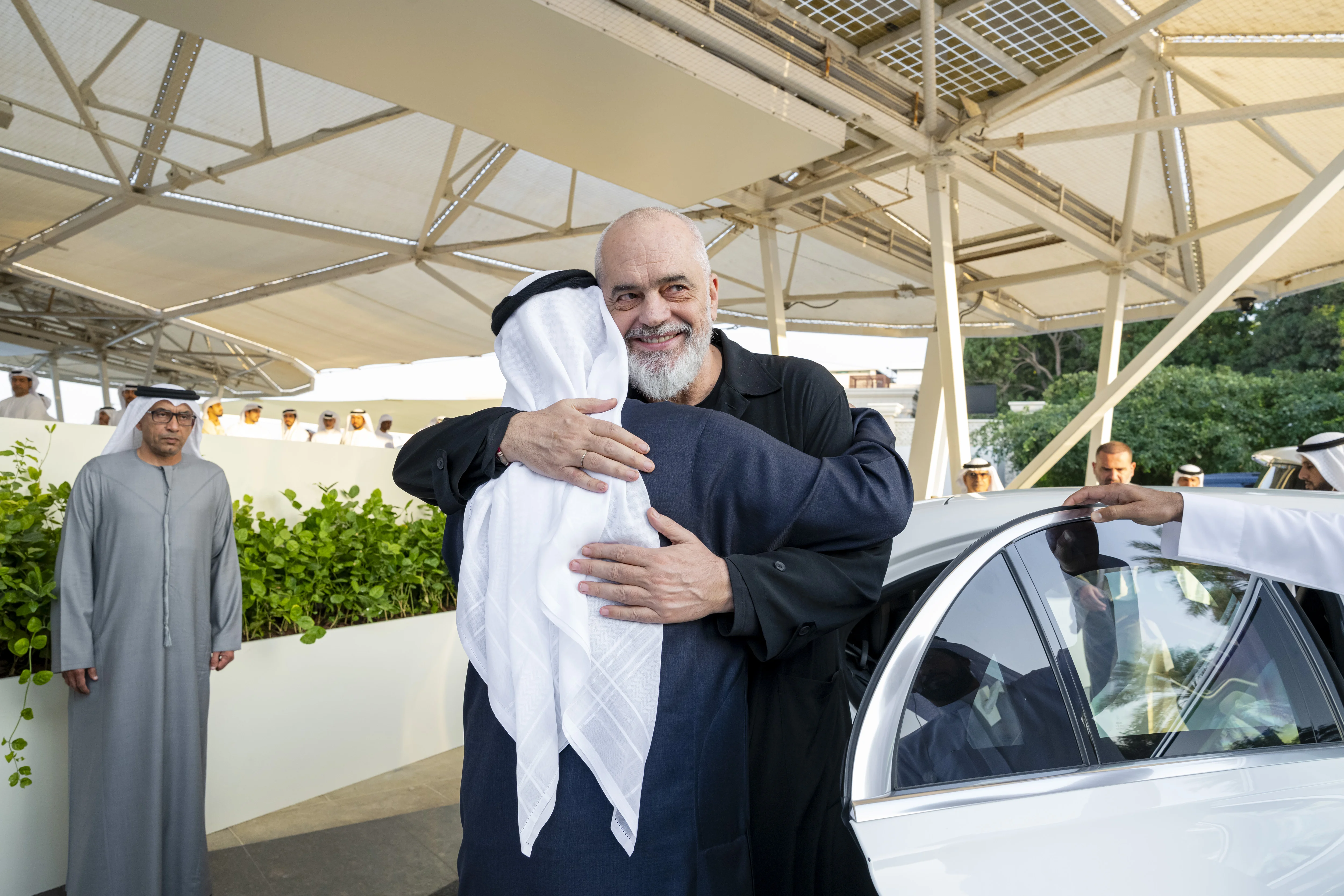 وأعرب معالي إيدي راما رئيس وزراء جمهورية ألبانيا عن شكره لصاحب السمو رئيس الدولة على حفاوة الاستقبال ..مؤكداً اعتزازه بتكريمه بـ"وسام زايد" الذي يجسد متانة روابط الصداقة بين البلدين وما يجمعهما من تعاون مشترك وأسس راسخة قائمة على الاحترام المتبادل والمصالح المشتركة.