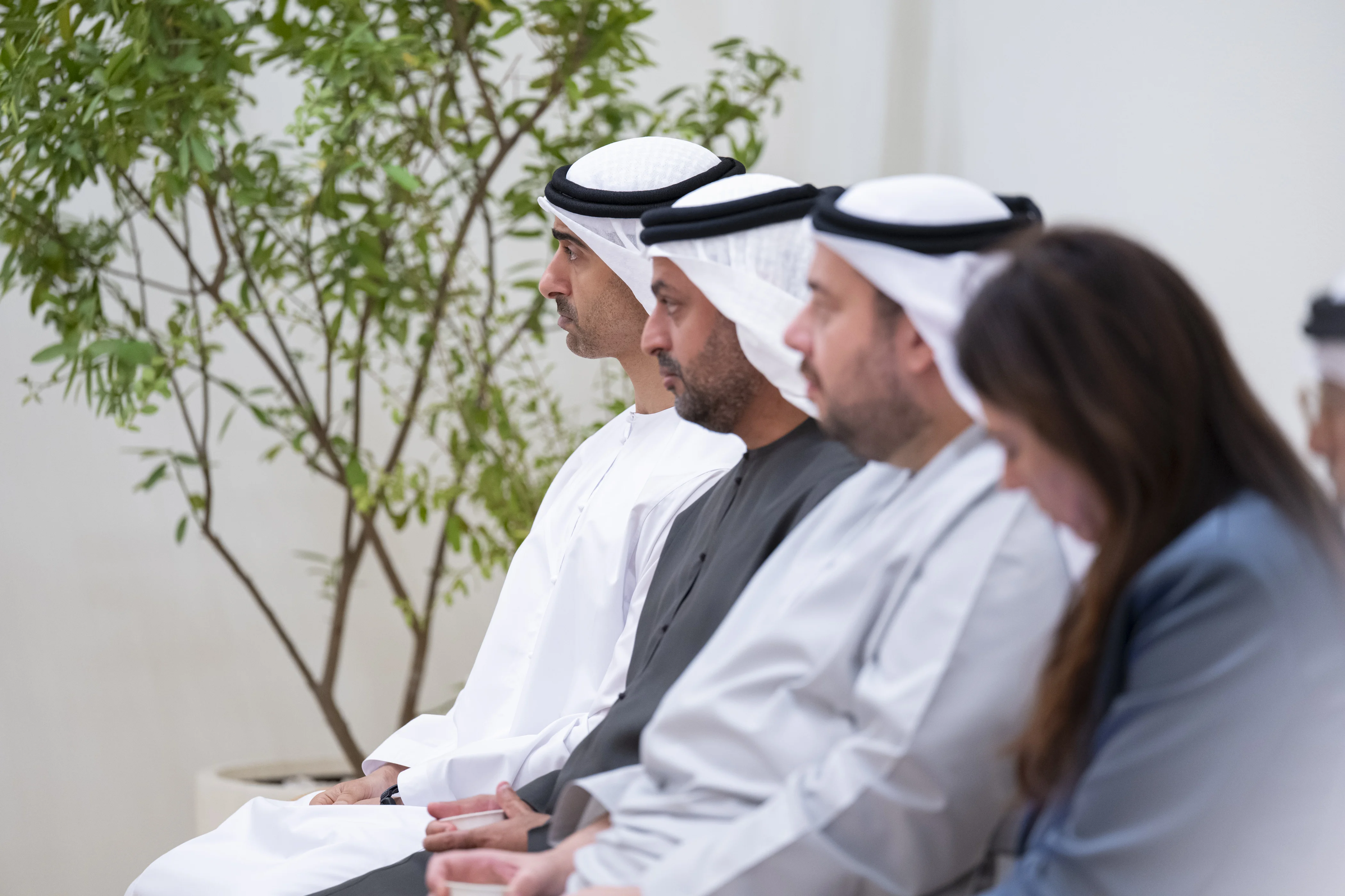 حضر اللقاء..سمو الشيخ حمدان بن محمد بن زايد آل نهيان نائب رئيس ديوان الرئاسة للشؤون الخاصة ومعالي الشيخ محمد بن حمد بن طحنون آل نهيان مستشار صاحب السمو رئيس الدولة، وعدد من الوزراء وكبار المسؤولين في الدولة.