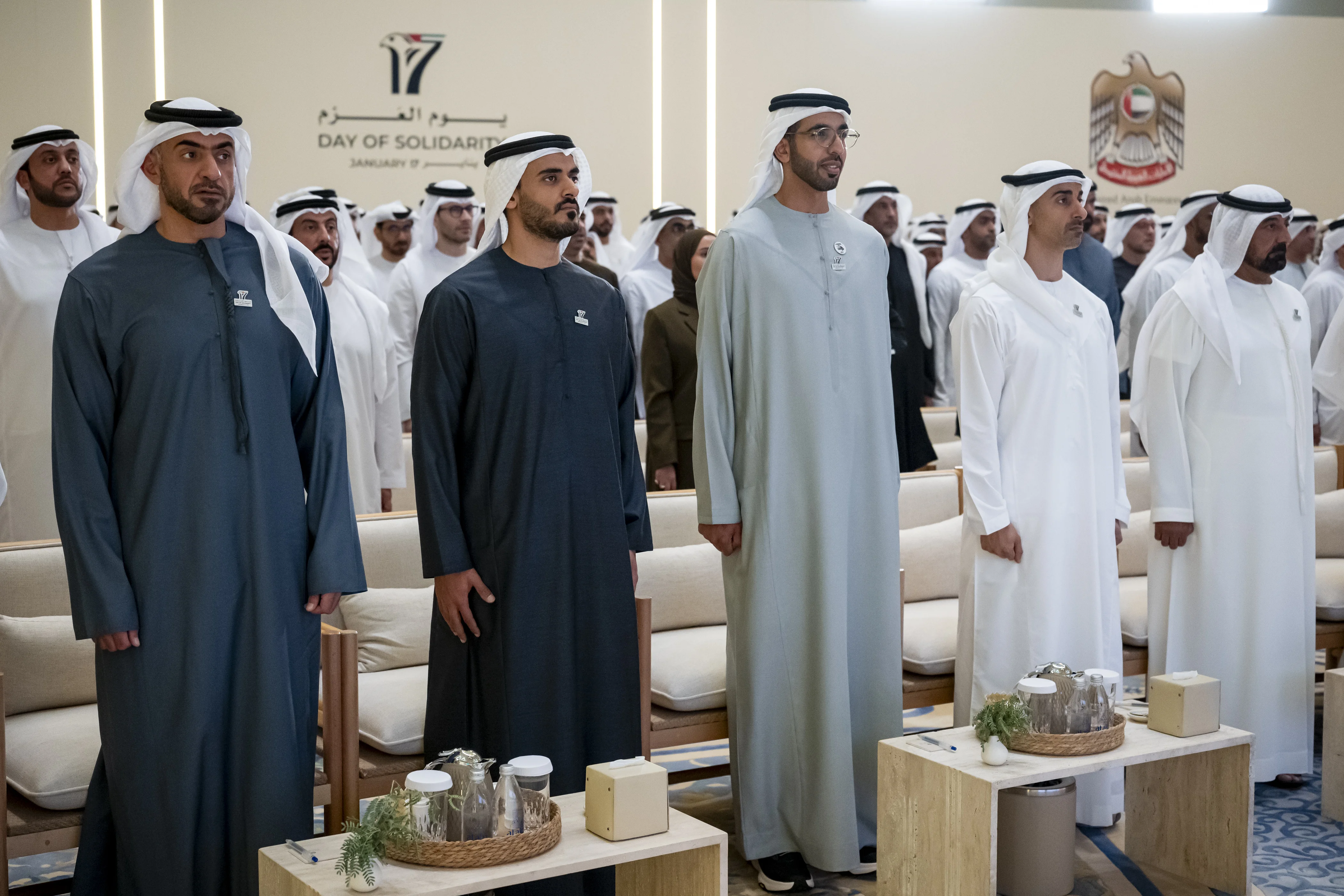 آل نهيان نائب حاكم إمارة أبوظبي مستشار الأمن الوطني وسمو الشيخ هزاع بن زايد آل نهيان ممثل الحاكم في منطقة العين والفريق سمو الشيخ سيف بن زايد آل نهيان نائب رئيس مجلس الوزراء وزير الداخلية وسمو الشيخ حامد بن زايد آل نهيان وسمو الشيخ عبد الله بن زايد آل نهيان نائب رئيس مجلس الوزراء وزير الخارجية وسمو الشيخ ذياب بن محمد بن زايد آل نهيان نائب رئيس ديوان الرئاسة للشؤون التنموية وأسر الشهداء وسمو الشيخ حمدان بن محمد بن زايد آل نهيان نائب رئيس ديوان الرئاسة للشؤون الخاصة وسمو الشيخ زايد بن محمد بن زايد آل نهيان وسمو الشيخ أحمد بن سعيد آل مكتوم، رئيس هيئة دبي للطيران المدني، الرئيس الأعلى الرئيس التنفيذي لطيران الإمارات والمجموعة وسمو الشيخ منصور بن محمد بن راشد آل مكتوم، رئيس اللجنة الأولمبية الوطنية ومعالي الشيخ نهيان بن مبارك آل نهيان وزير التسامح والتعايش ومعالي الشيخ محمد بن حمد بن طحنون آل نهيان مستشار رئيس الدولة وعدد من الشيوخ والوزراء وكبار المسؤولين.