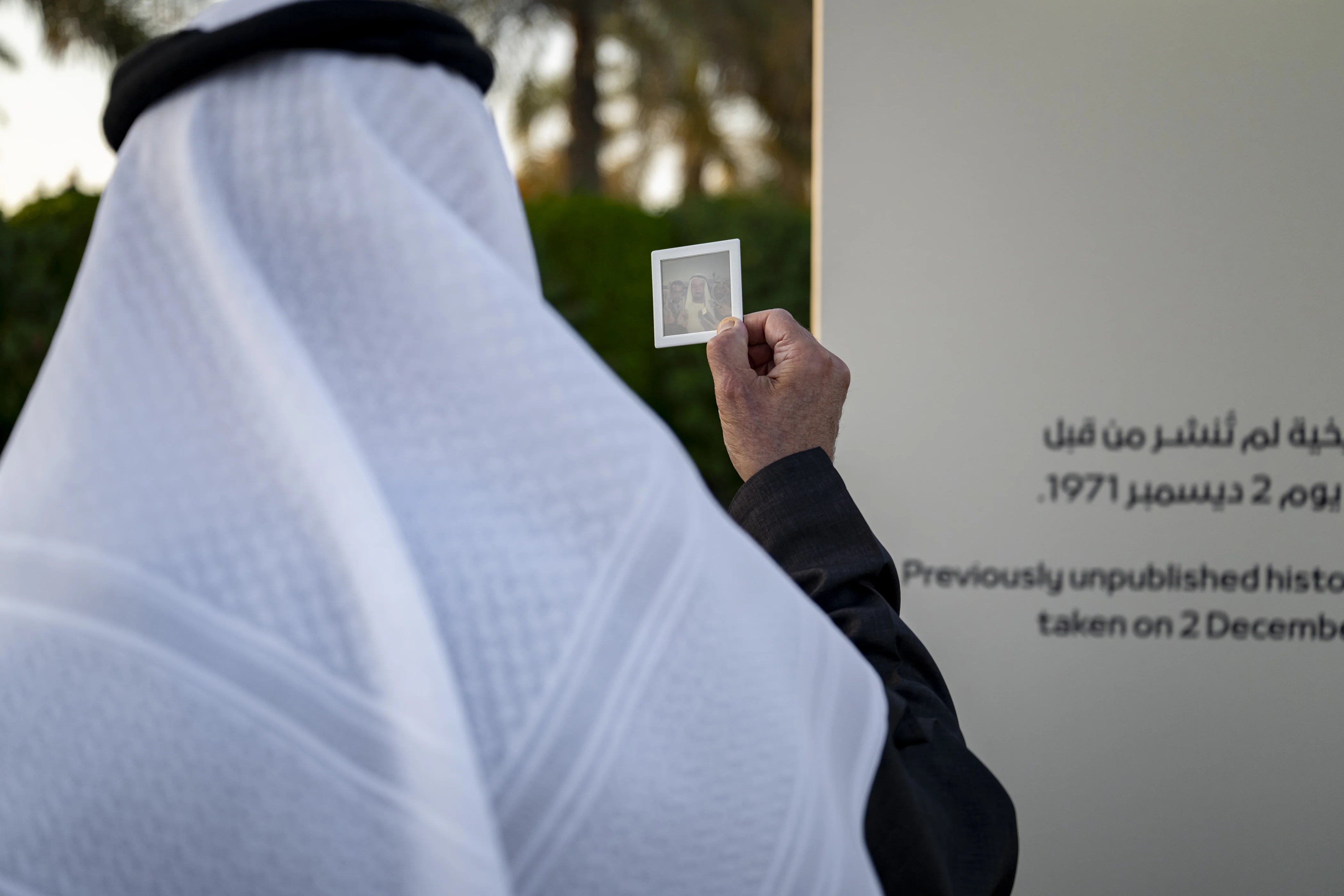 كما اطلع صاحب السمو رئيس الدولة على مجموعة صور نادرة تضم أكثر من 60 صورة لم يسبق عرضها والتي توثق مشاهد تاريخية ليوم إعلان الاتحاد ورفع علم دولة الإمارات العربية المتحدة للمرة الأولى في 2 من شهر ديسمبر عام 1971 في دار الاتحاد في دبي.