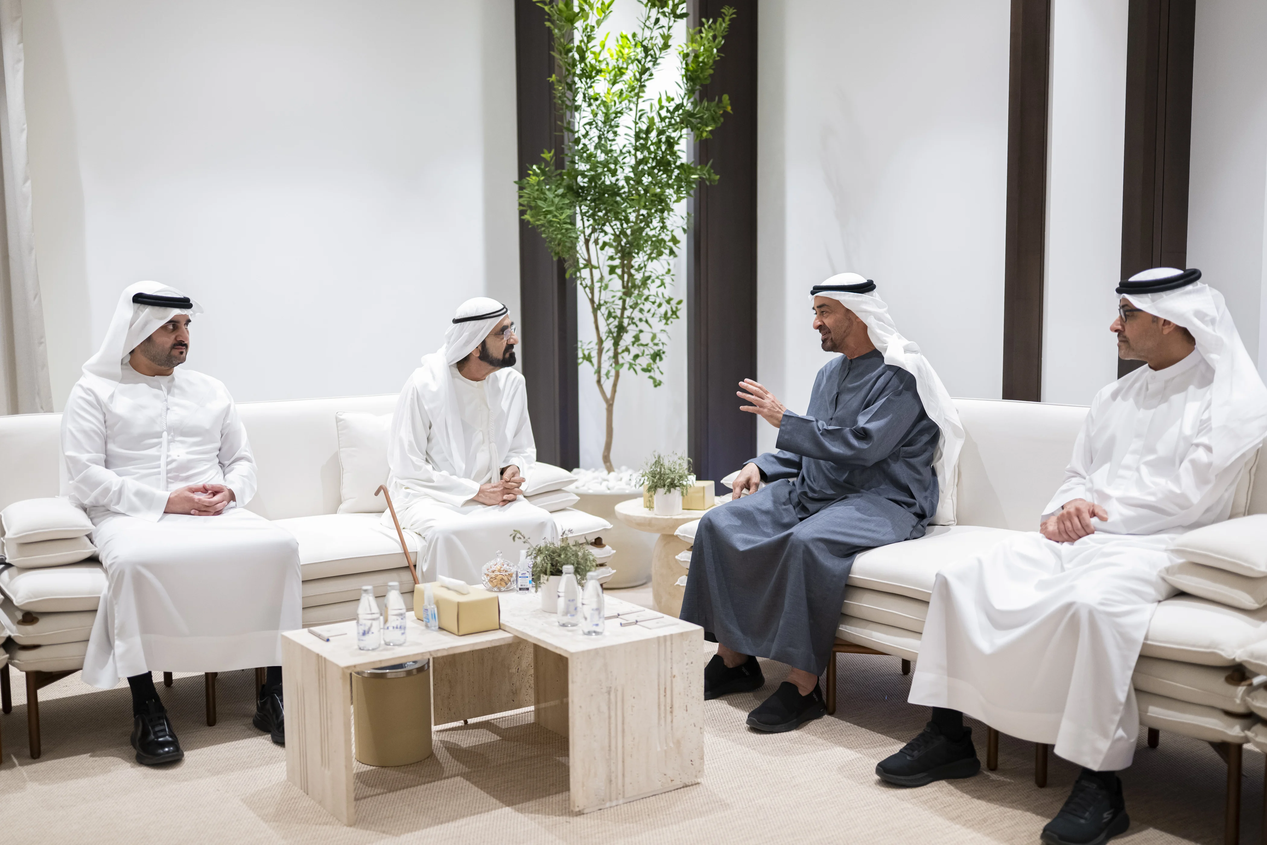 التقى صاحب السمو الشيخ محمد بن زايد آل نهيان، رئيس الدولة، حفظه الله، أخاه صاحب السمو الشيخ محمد بن راشد آل مكتوم، نائب رئيس الدولة رئيس مجلس الوزراء حاكم دبي، رعاه الله، بحضور سمو الشيخ منصور بن زايد آل نهيان، نائب رئيس الدولة نائب رئيس مجلس الوزراء رئيس ديوان الرئاسة.