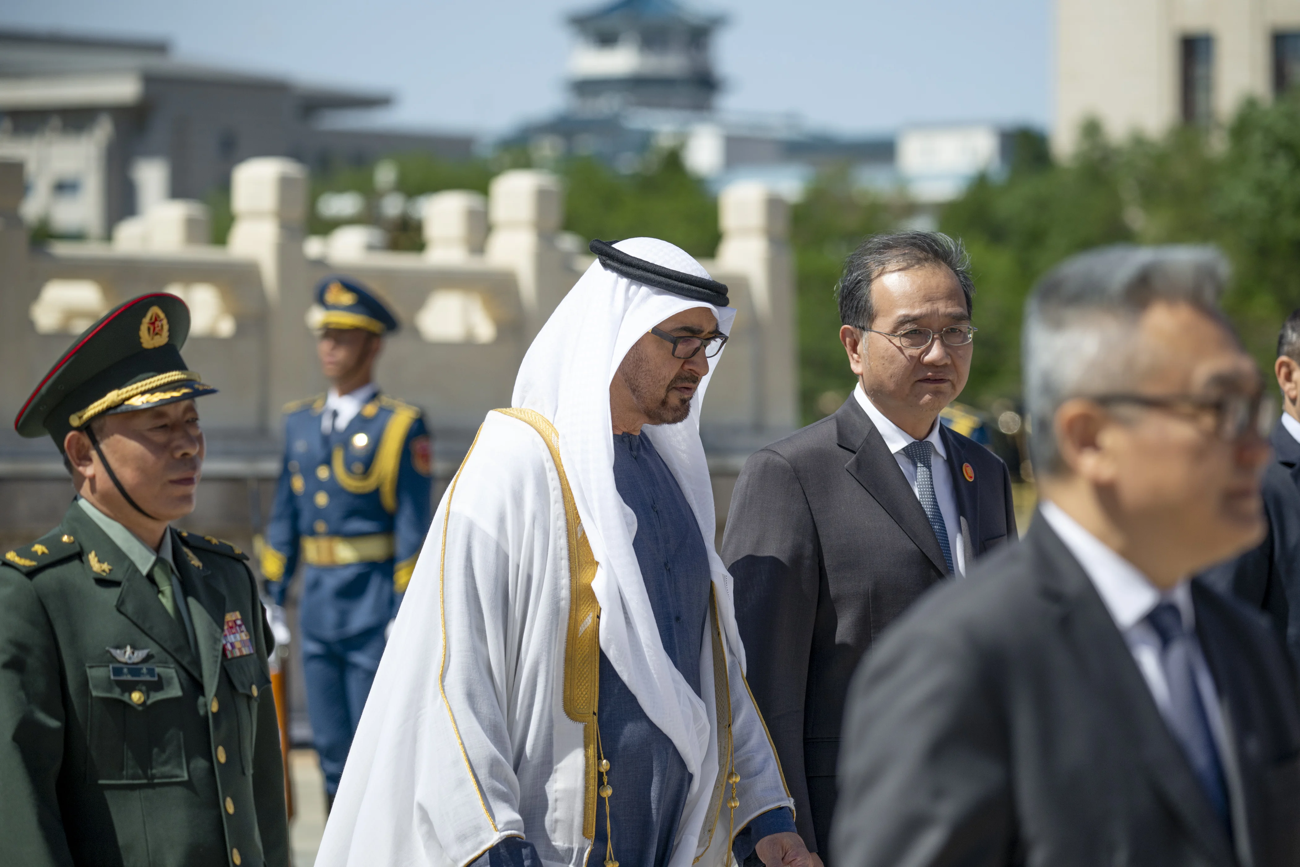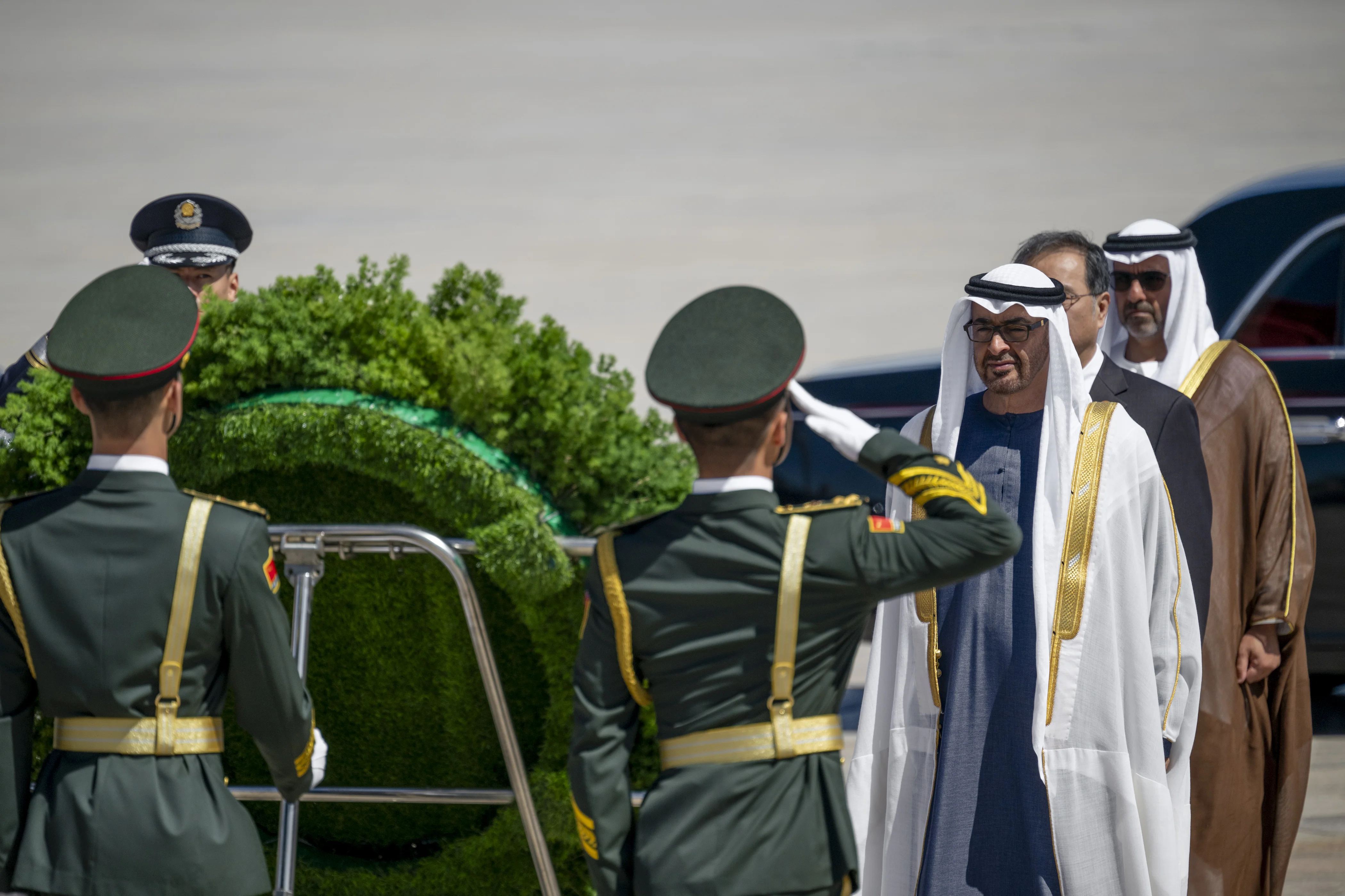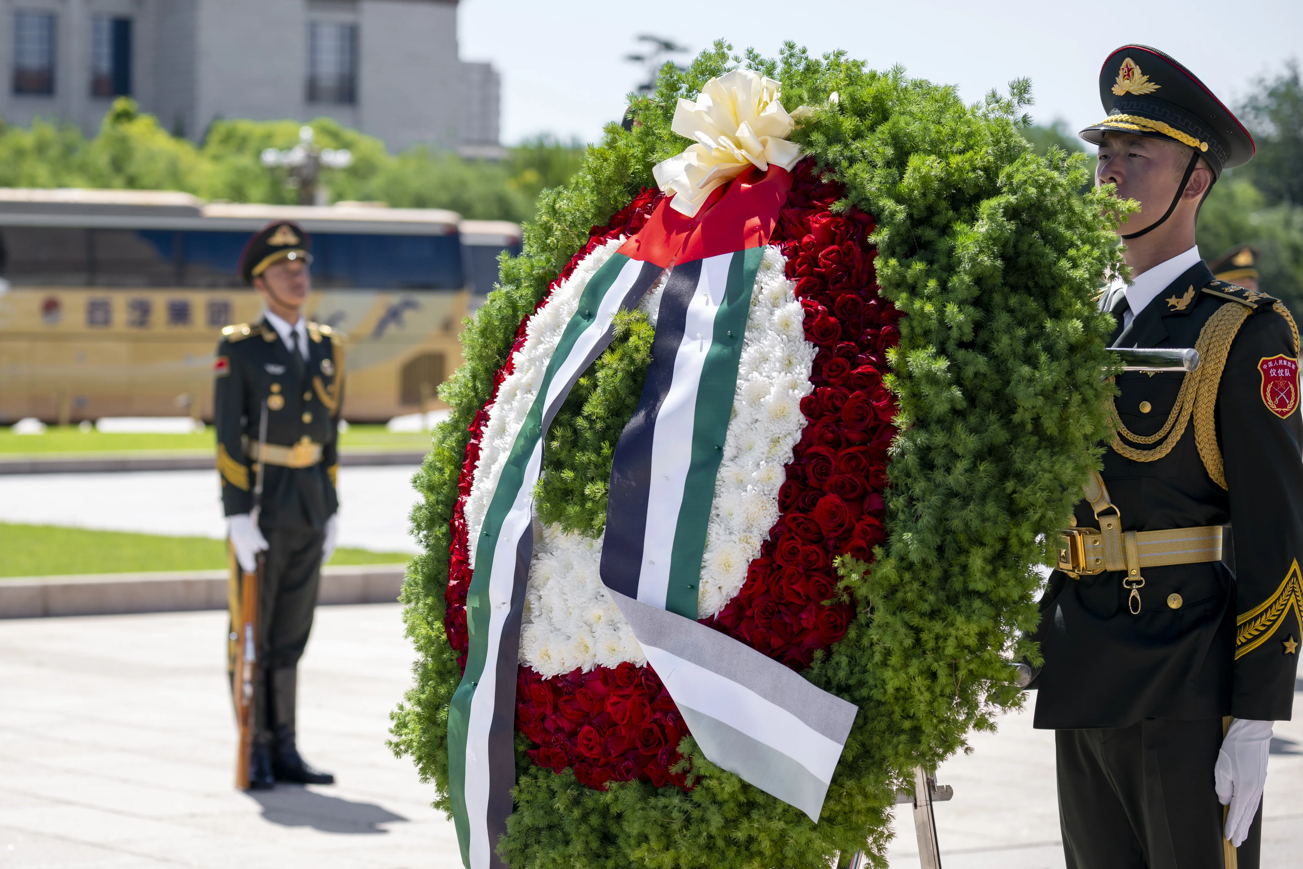 今日,阿联酋总统谢赫·穆罕默德·本·扎耶德·阿勒纳哈扬殿下在对中华人民共和国进行国事访问期间,参观了北京人民英雄纪念碑。 殿下向纪念碑敬献花圈,该纪念碑是为了纪念历史上为保卫祖国而牺牲的中国人民而建造。殿下对中国人民克服挑战的韧性表示钦佩,正是这种韧性使中国持续取得现今的非凡进步与发展。