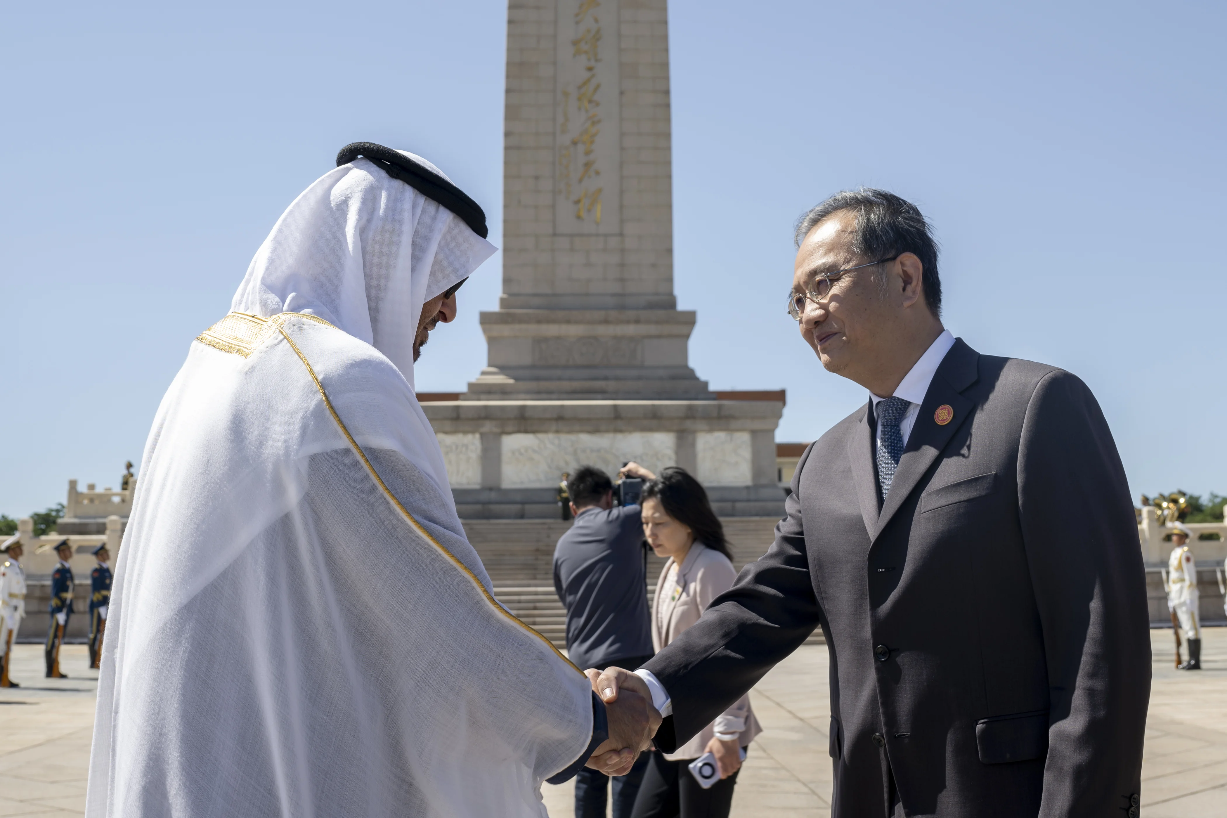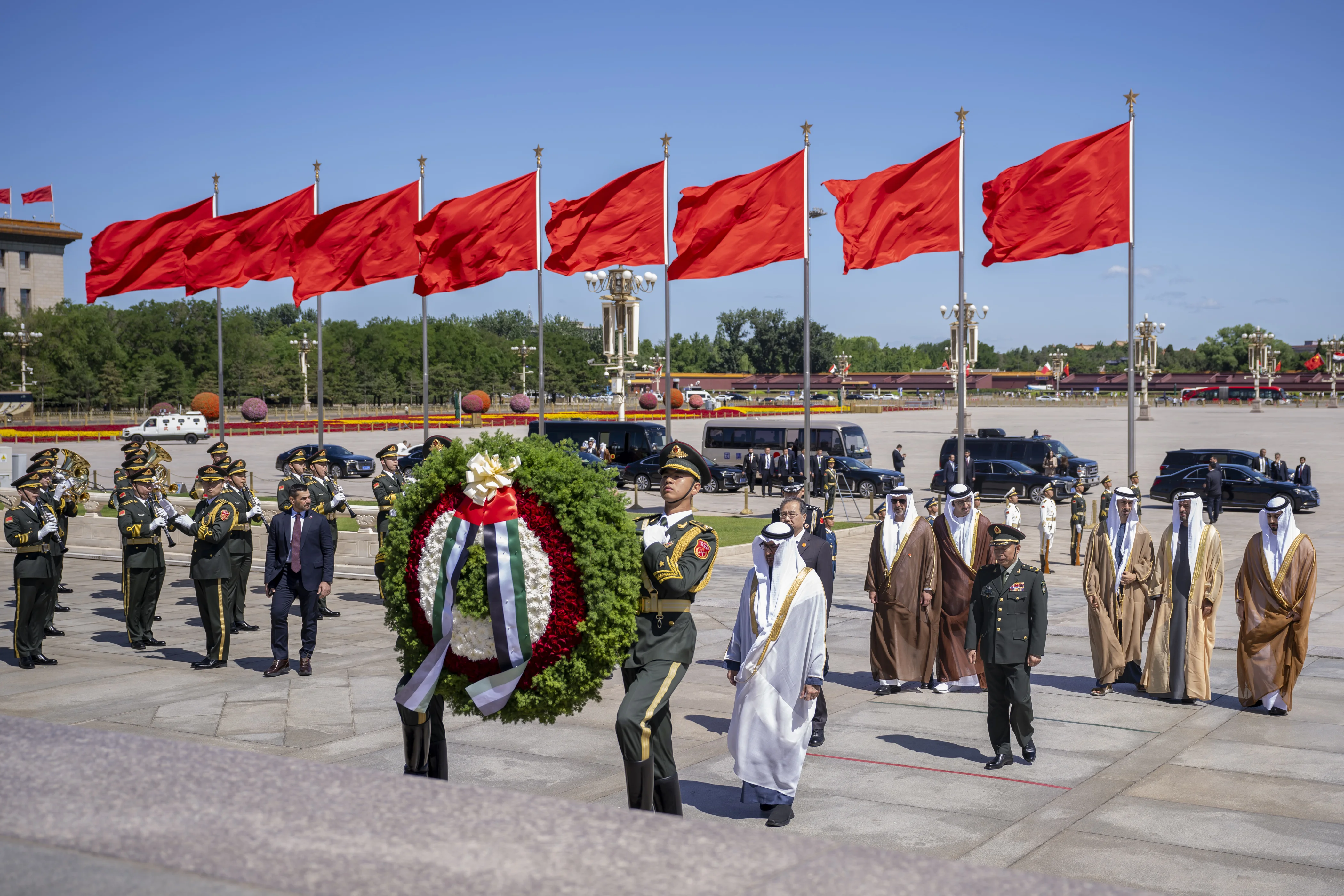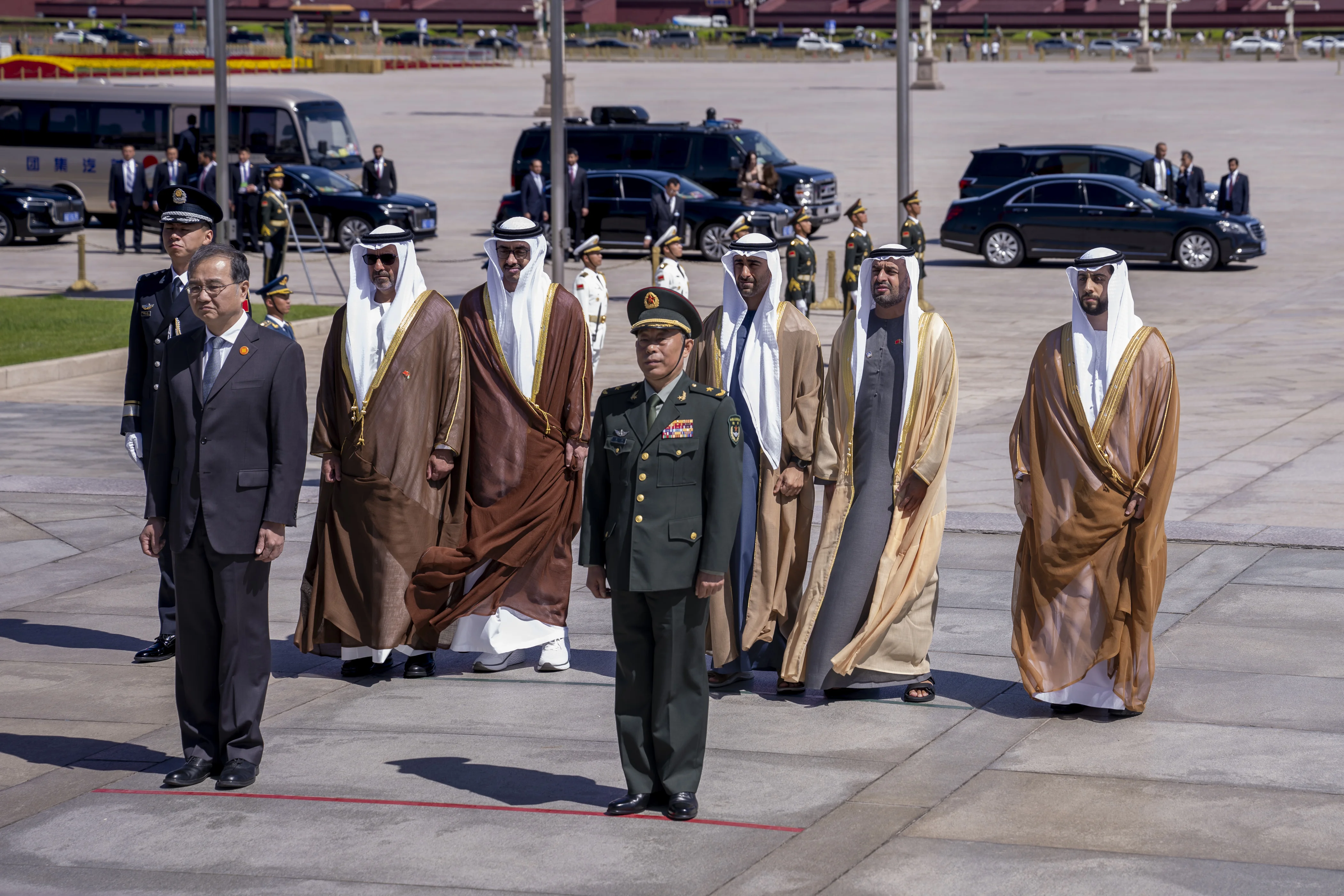 今日,阿联酋总统谢赫·穆罕默德·本·扎耶德·阿勒纳哈扬殿下在对中华人民共和国进行国事访问期间,参观了北京人民英雄纪念碑。 殿下向纪念碑敬献花圈,该纪念碑是为了纪念历史上为保卫祖国而牺牲的中国人民而建造。殿下对中国人民克服挑战的韧性表示钦佩,正是这种韧性使中国持续取得现今的非凡进步与发展。